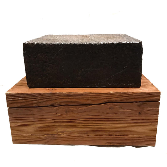 Travertine & Weathered Pine Wood Table