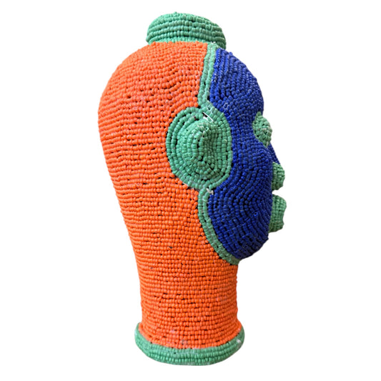 Ife Tribe Hand Beaded Vintage Head Sculptures Blue Orange & Green