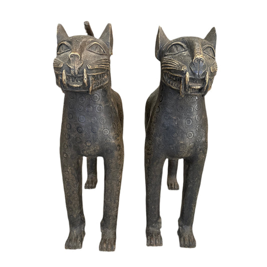Pair of Benin Bronze Leopards 200+ Years Old