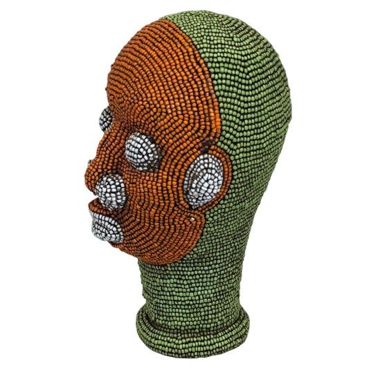 Ife Tribe Hand Beaded Vintage Head Sculptures Orange Green