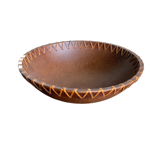 Etched Carved Bowl with Metal strips