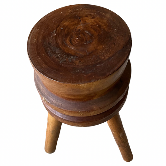 Brutalist 3-Leg Stool with Wood Slice