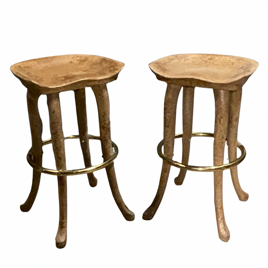 Pair of Iron & Leather Vintage Bar Stools
