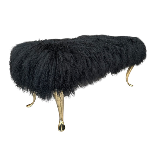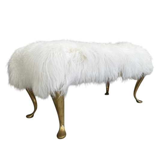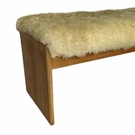 Vintage Danish Bench w/ Sheepskin Upholstery