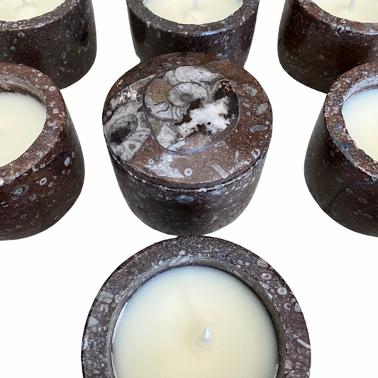 Orthoceras Fossil Triangular Gardenia Candle with Lid