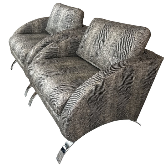 Directional 1989 Printed Reptile Lounge Chairs on Chrome Base - Pair