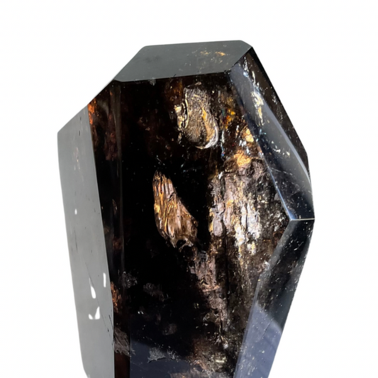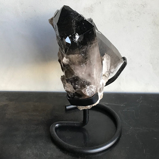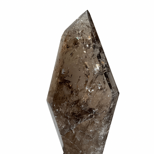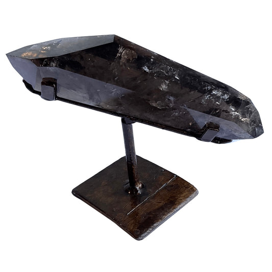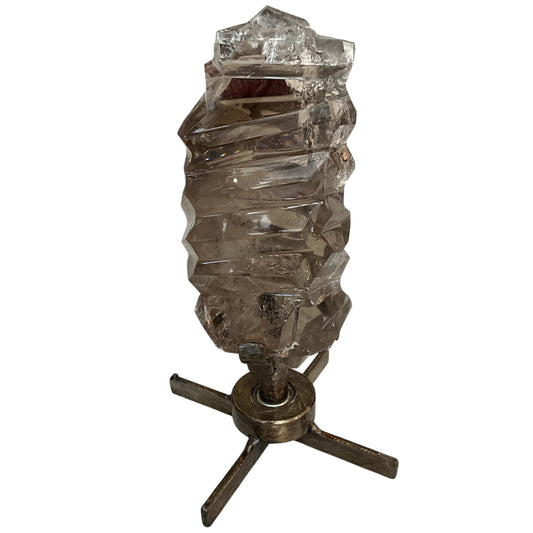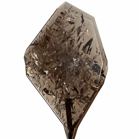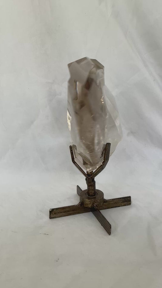 Clear Smoky Quartz Faceted Crystal on Spinning Stand