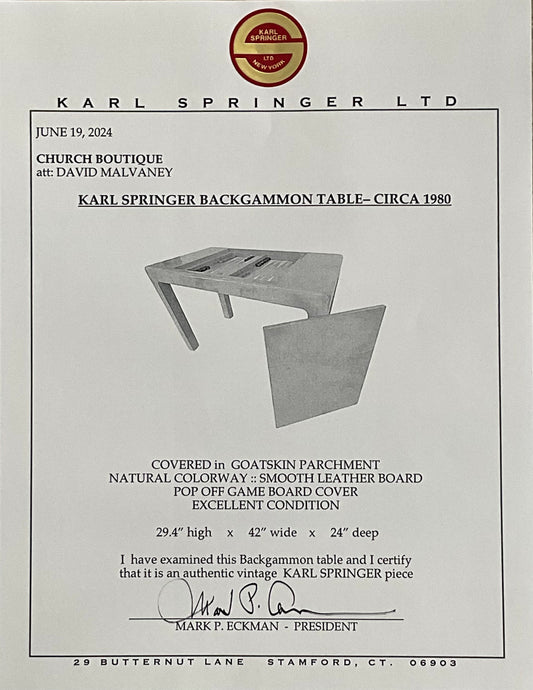 Karl Springer 1977 Goatskin Backgammon Game Table
