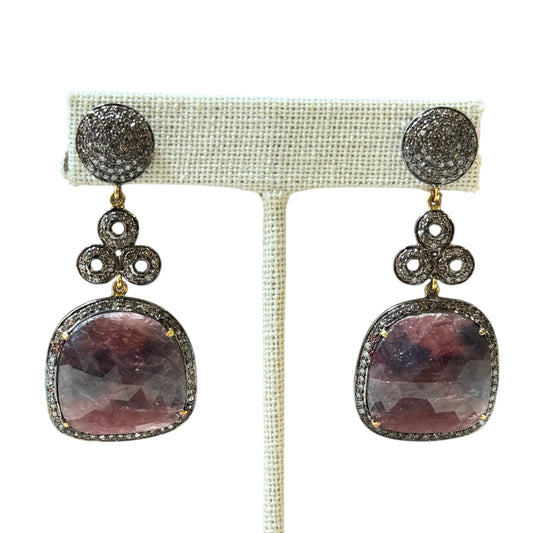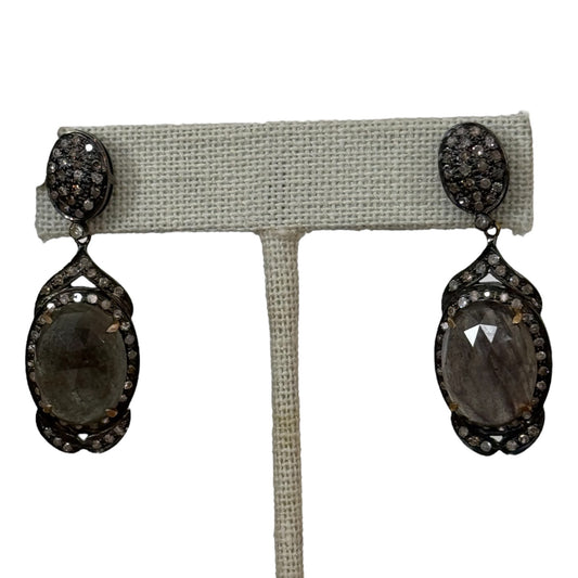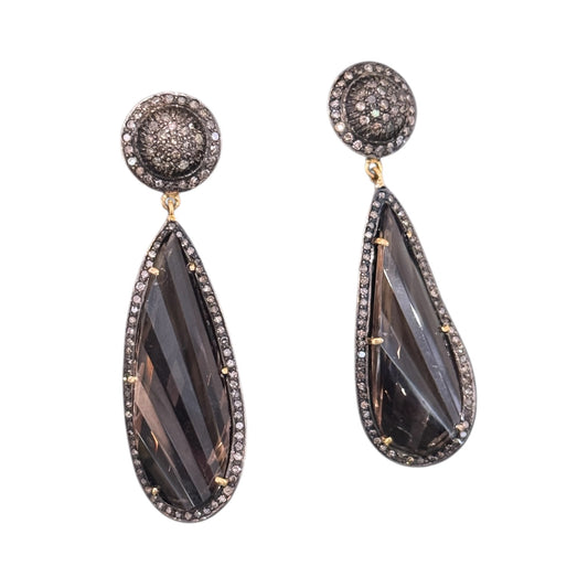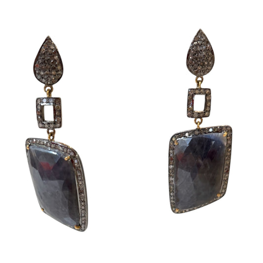 Faceted Smoky Sapphires & Diamonds Earrings