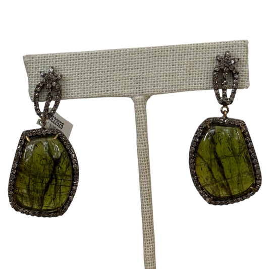 Faceted Green Sapphire & Diamond Earrings
