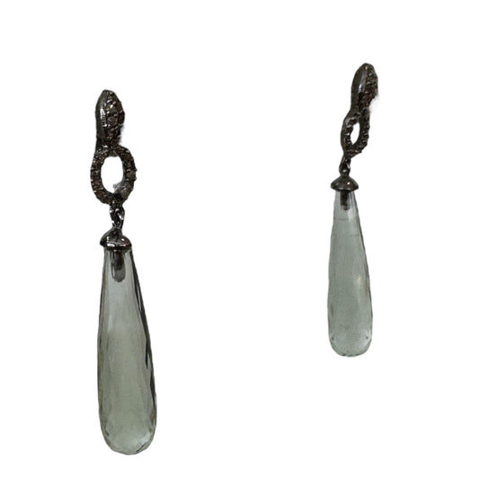 Oblong Drop Light Green Amethyst Earrings with Diamonds