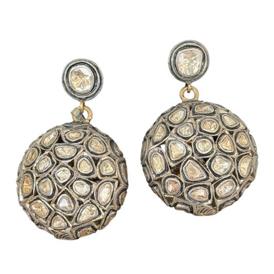 Round Pouf Earrings with Double Sided Diamonds