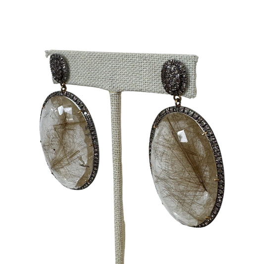 Rutilated Quartz Oval Earrings with Diamonds
