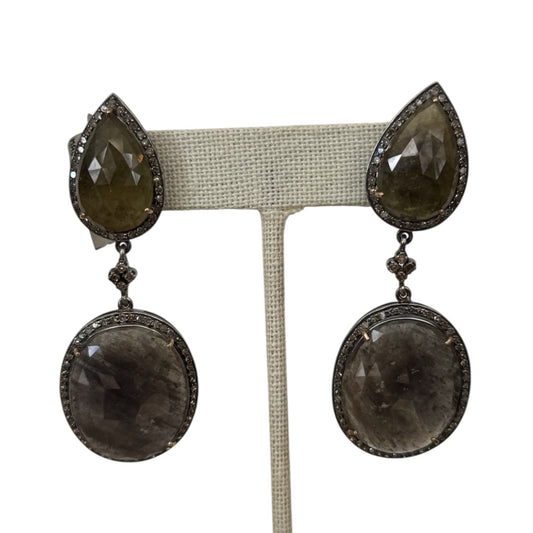 Faceted Olive Sapphire Tear & Oval Earrings with Diamonds