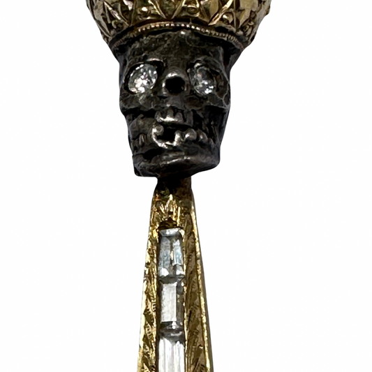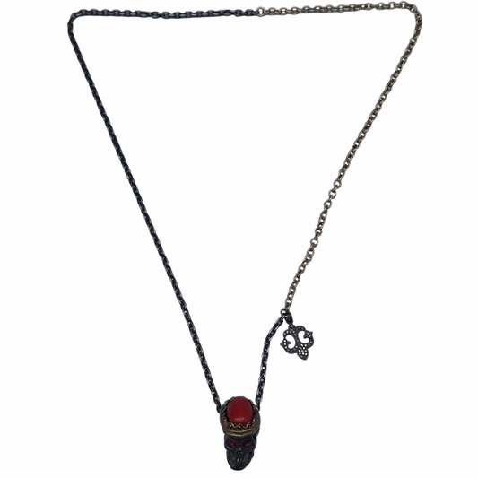 Skull Necklace with Coral Orange Sapphire & Diamonds