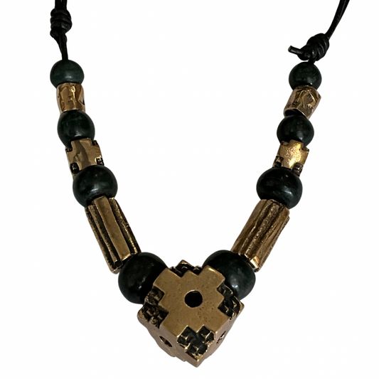 Bronze CHAKANA With Jade & Bronze Beads Necklace