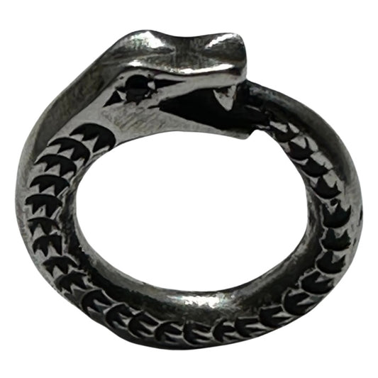 Silver Ouroboros Ring with Garnet Eyes