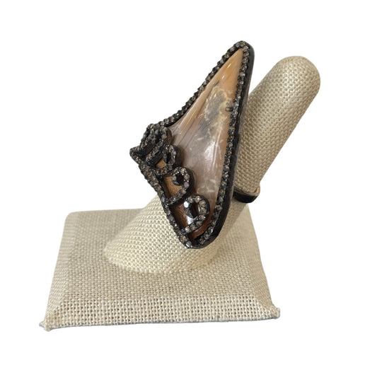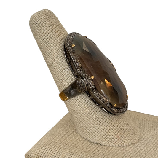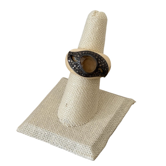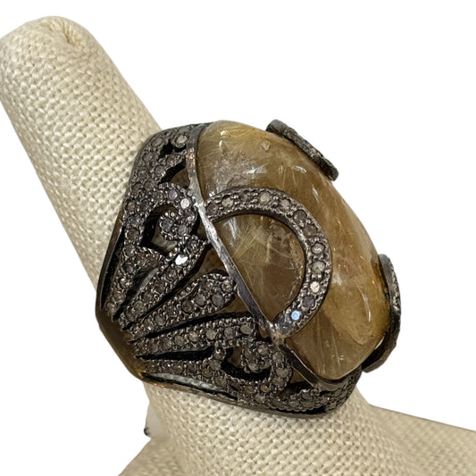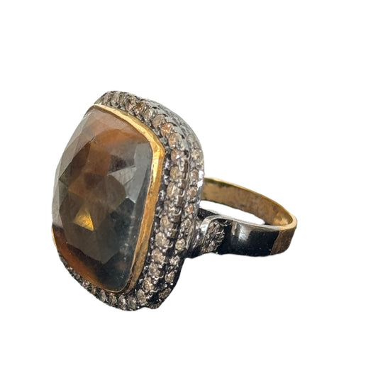 Bakelite Ring Featuring Smoky Topaz Stone & Diamonds