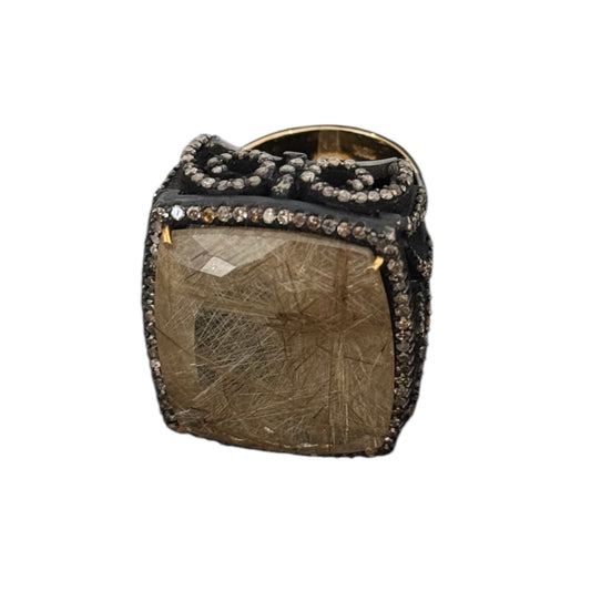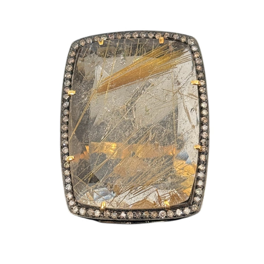 Rectangular Rutilated Quartz Ring w/ Diamonds