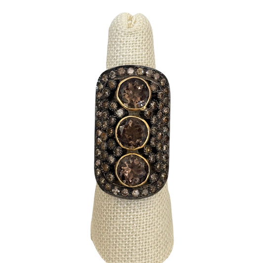 Ring with 3 Smoky Topaz Stones & Diamonds