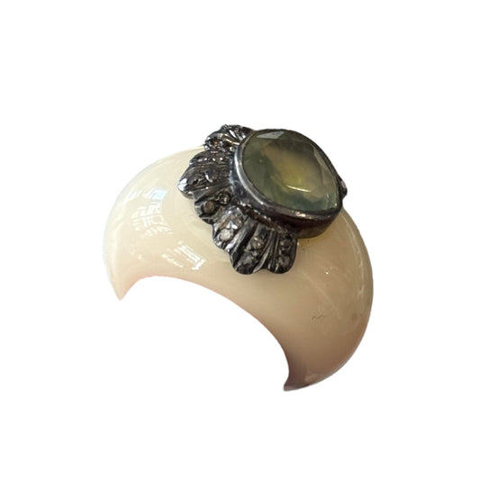 Bakelite Ring Featuring Peridot Stone & Diamonds