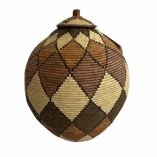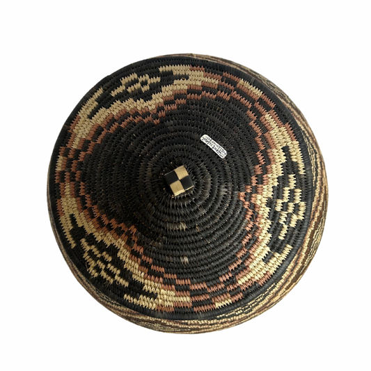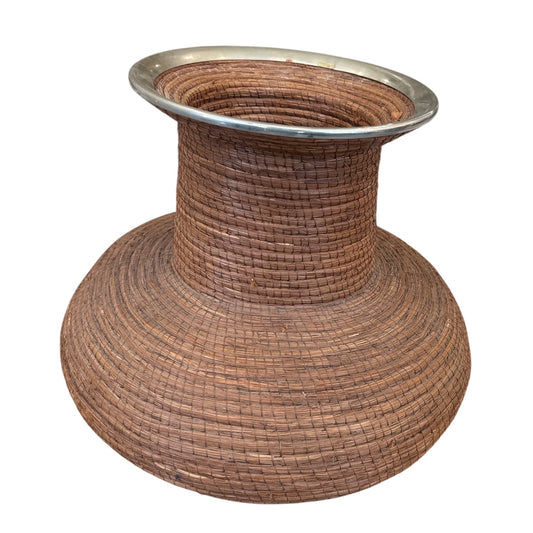 Rare Medium Pine Needle Basket w/ Metal Rim