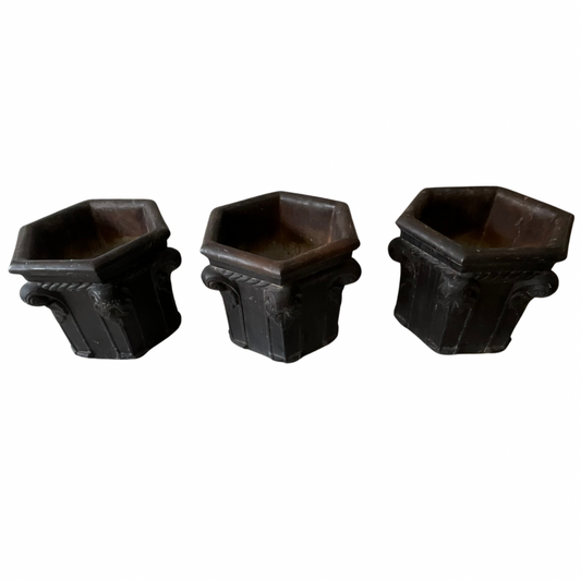 Pair of Solid Palmwood Asymmetrical Vintage Planters