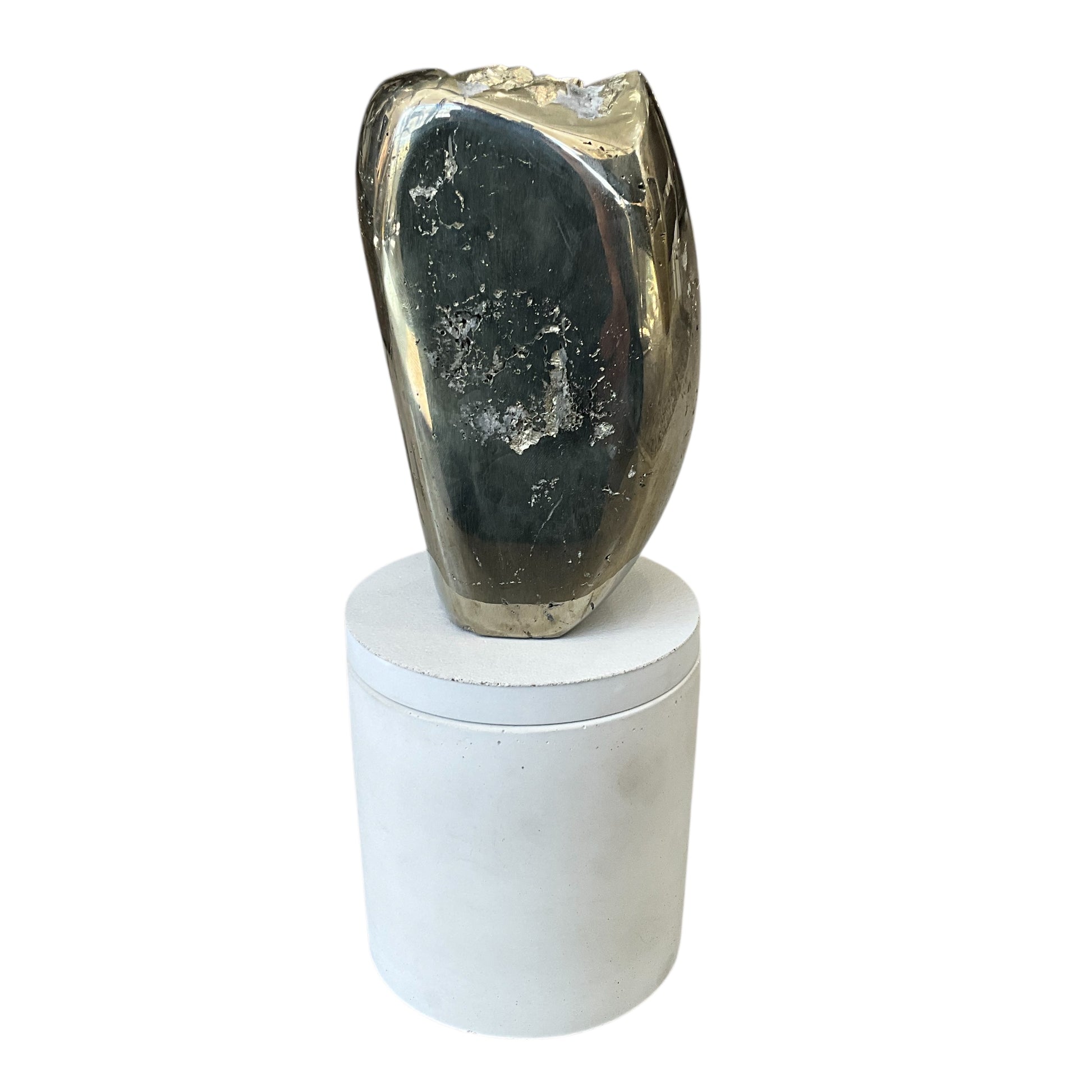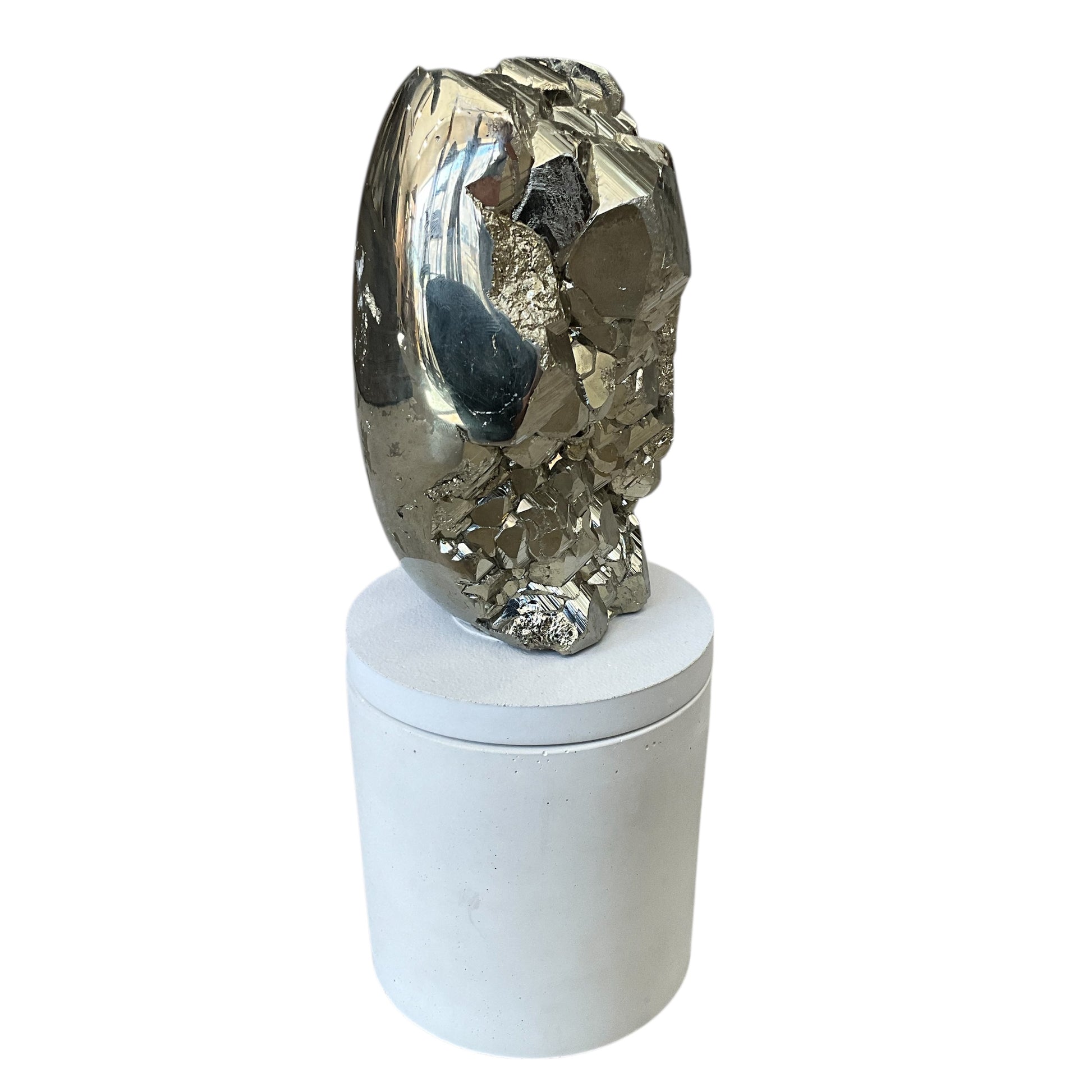 This Candle Features an Abstract Pyrite Cluster on the Lid - the Pyrite measures 3” Wide x 2.75" Deep x 5.5" Tall giving the candle an overall height of 10" with the lid