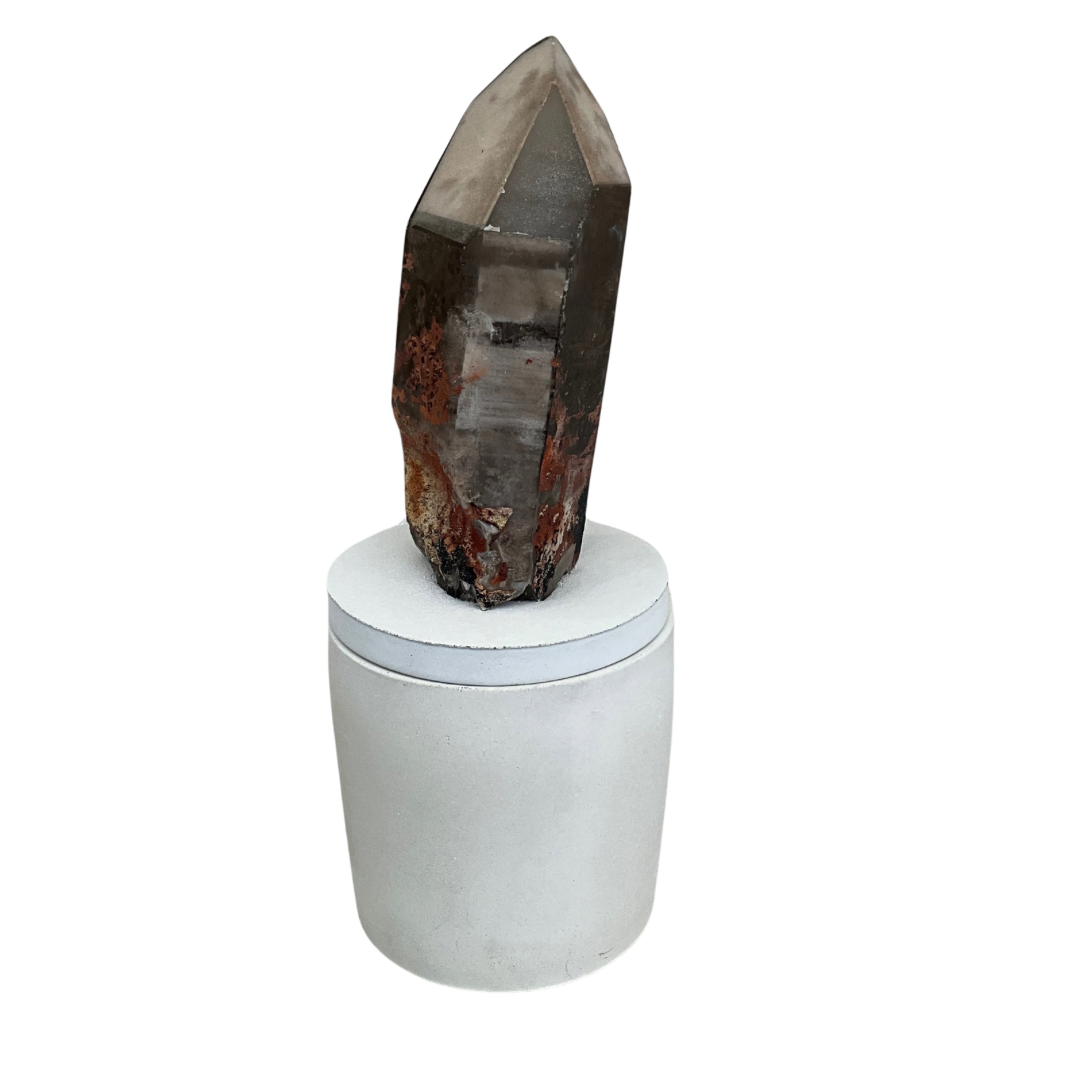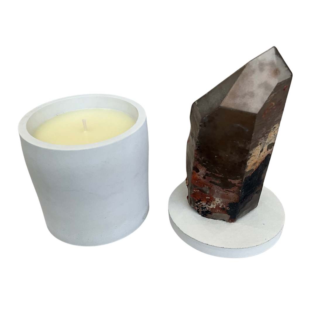 Abstract Smoky Quartz Crystal Lid Gardenia Candle