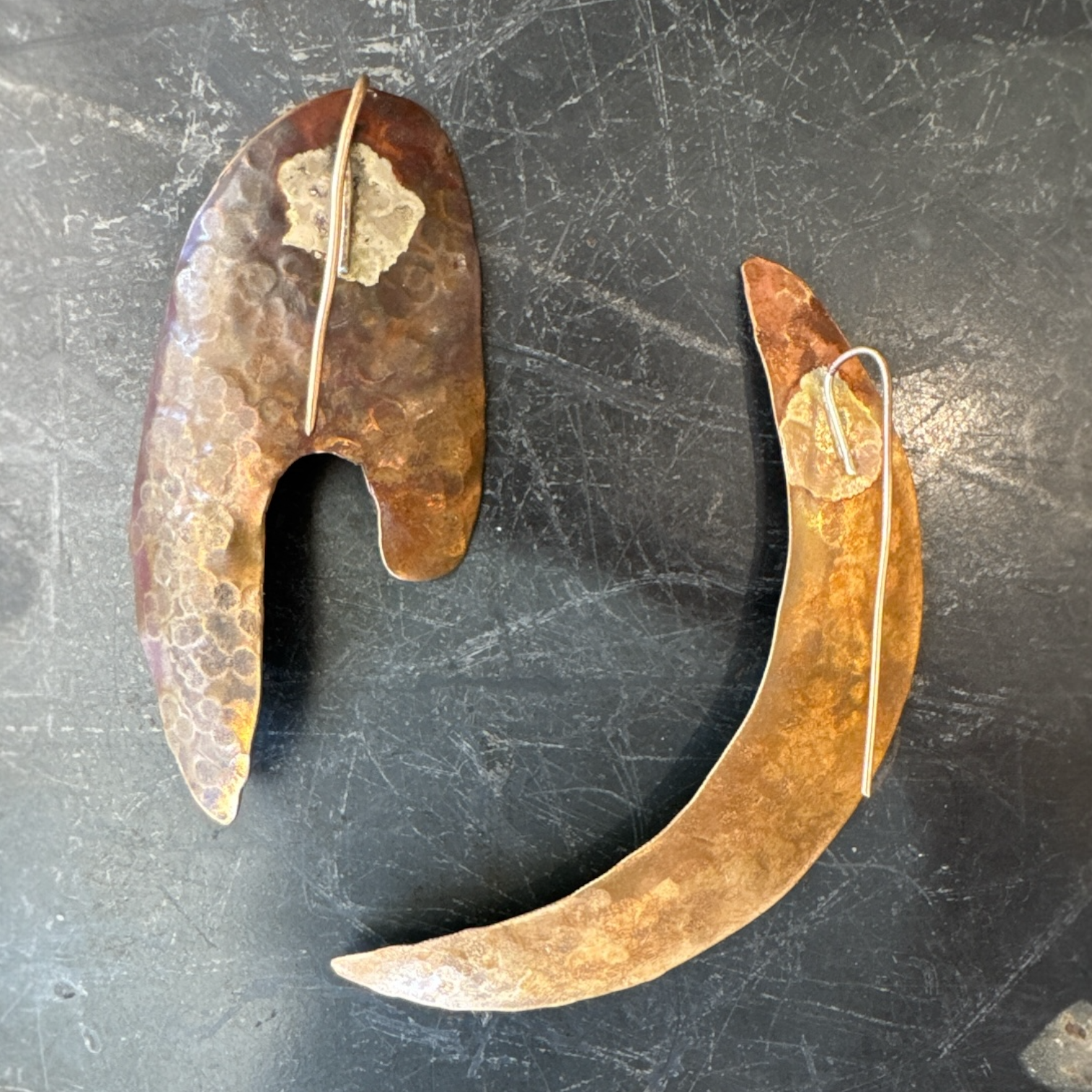 Asymmetrical Hand-Hammered Brass Abstract Earrings with 14k Earring Posts