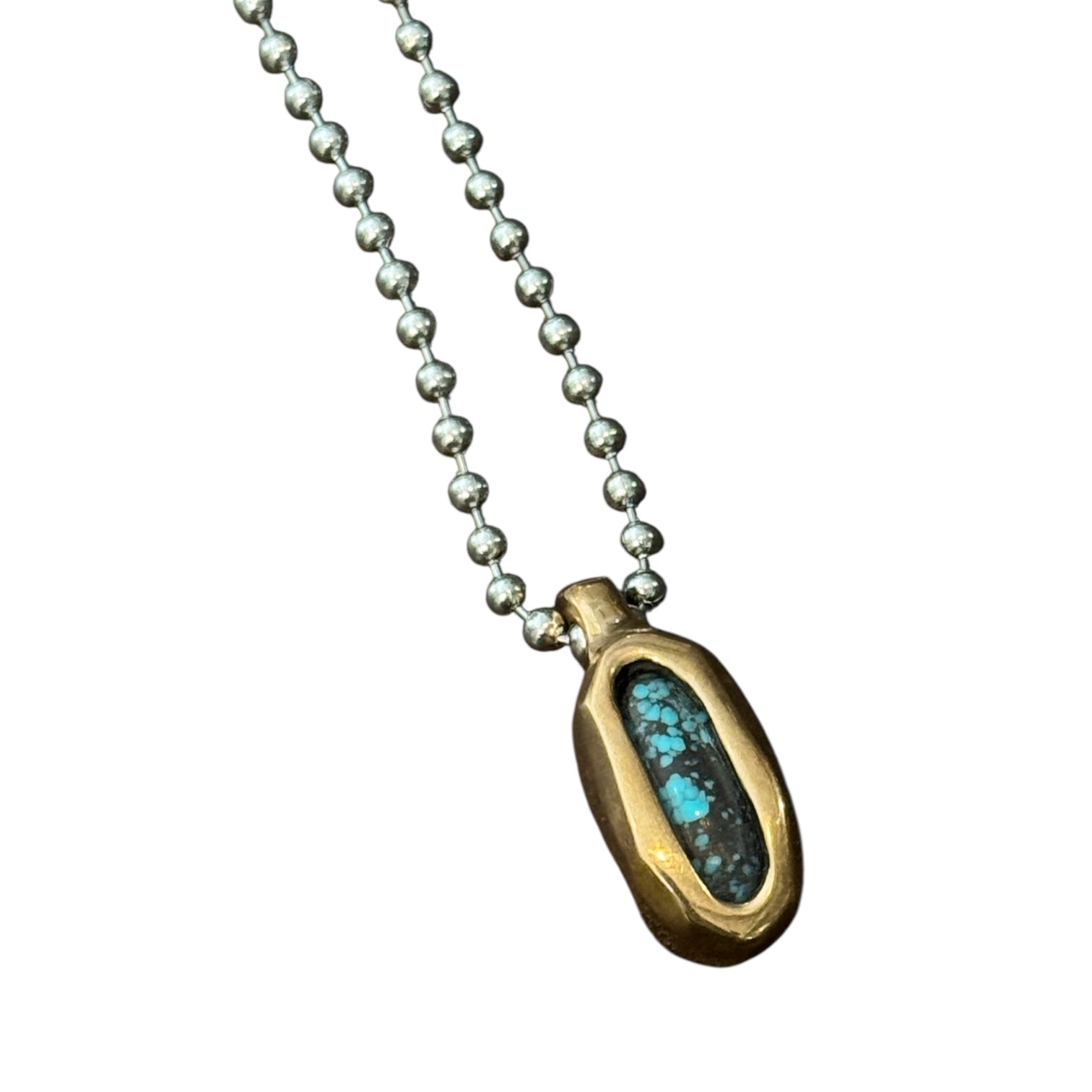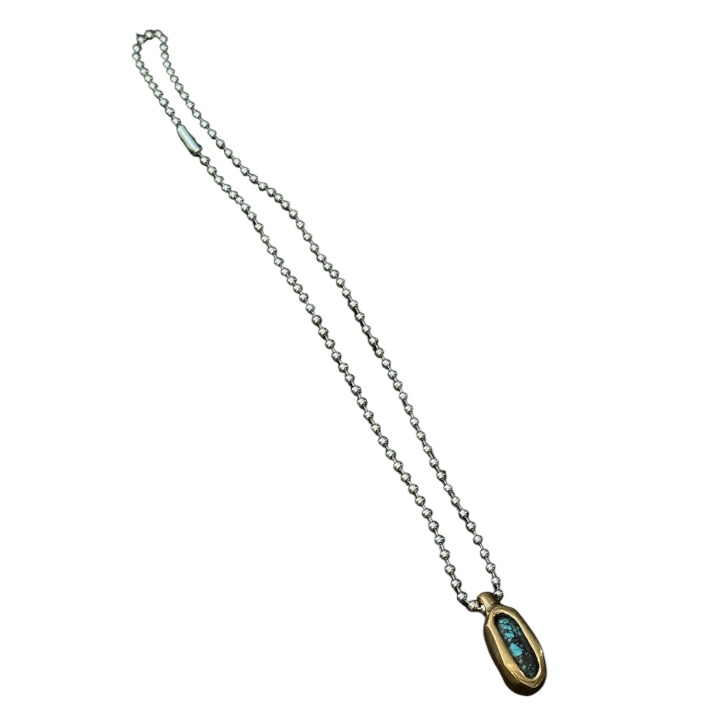 Bronze & Pilot Mountain Turquoise Necklace on Surgical Steel Ball Chain