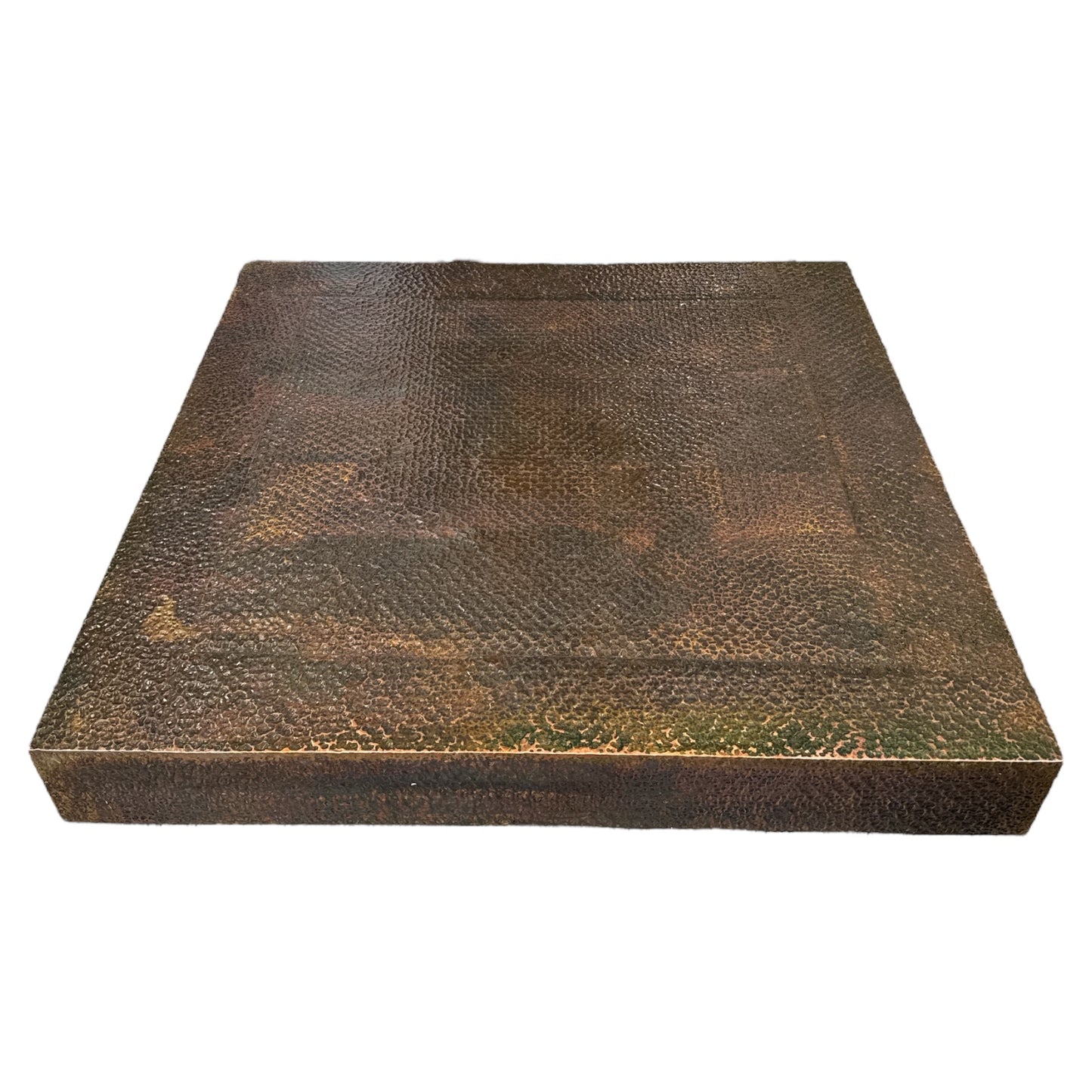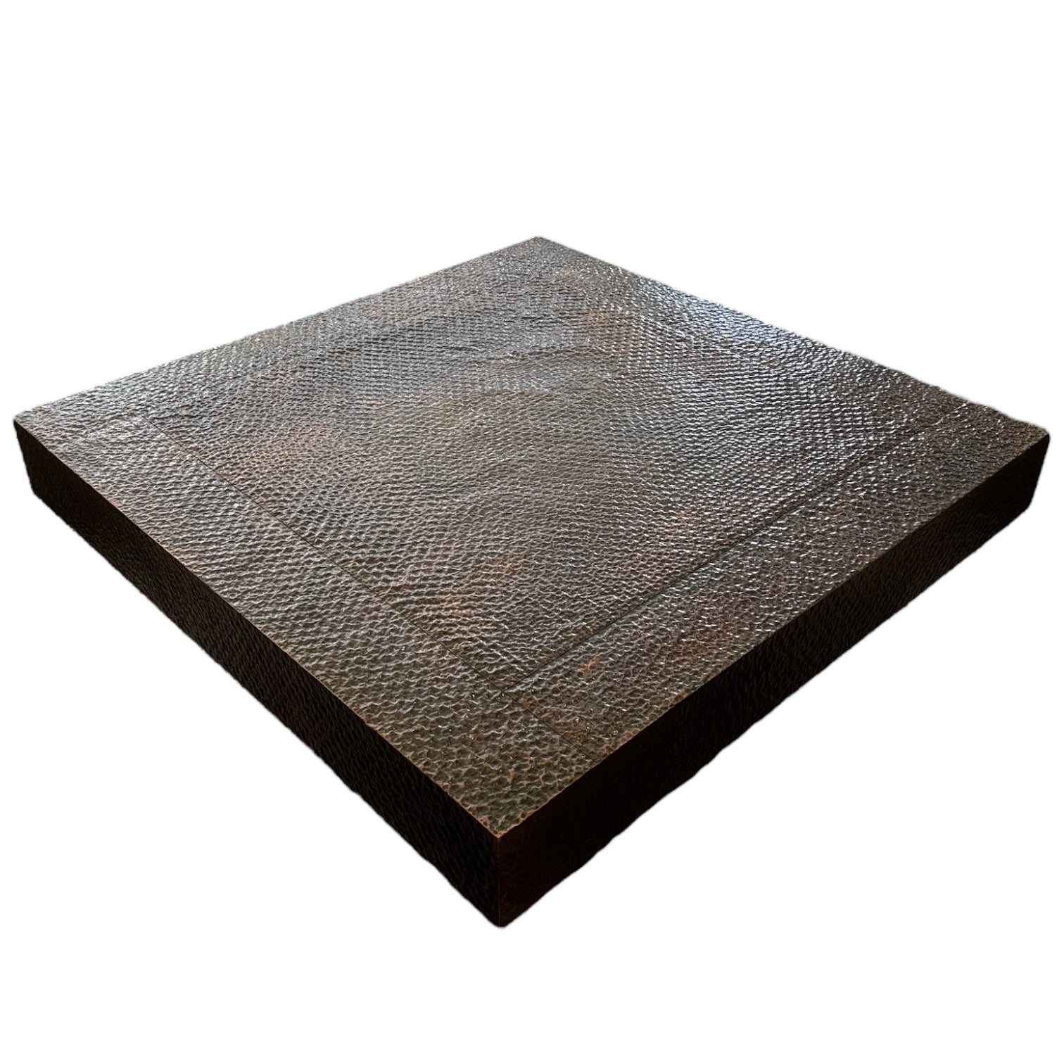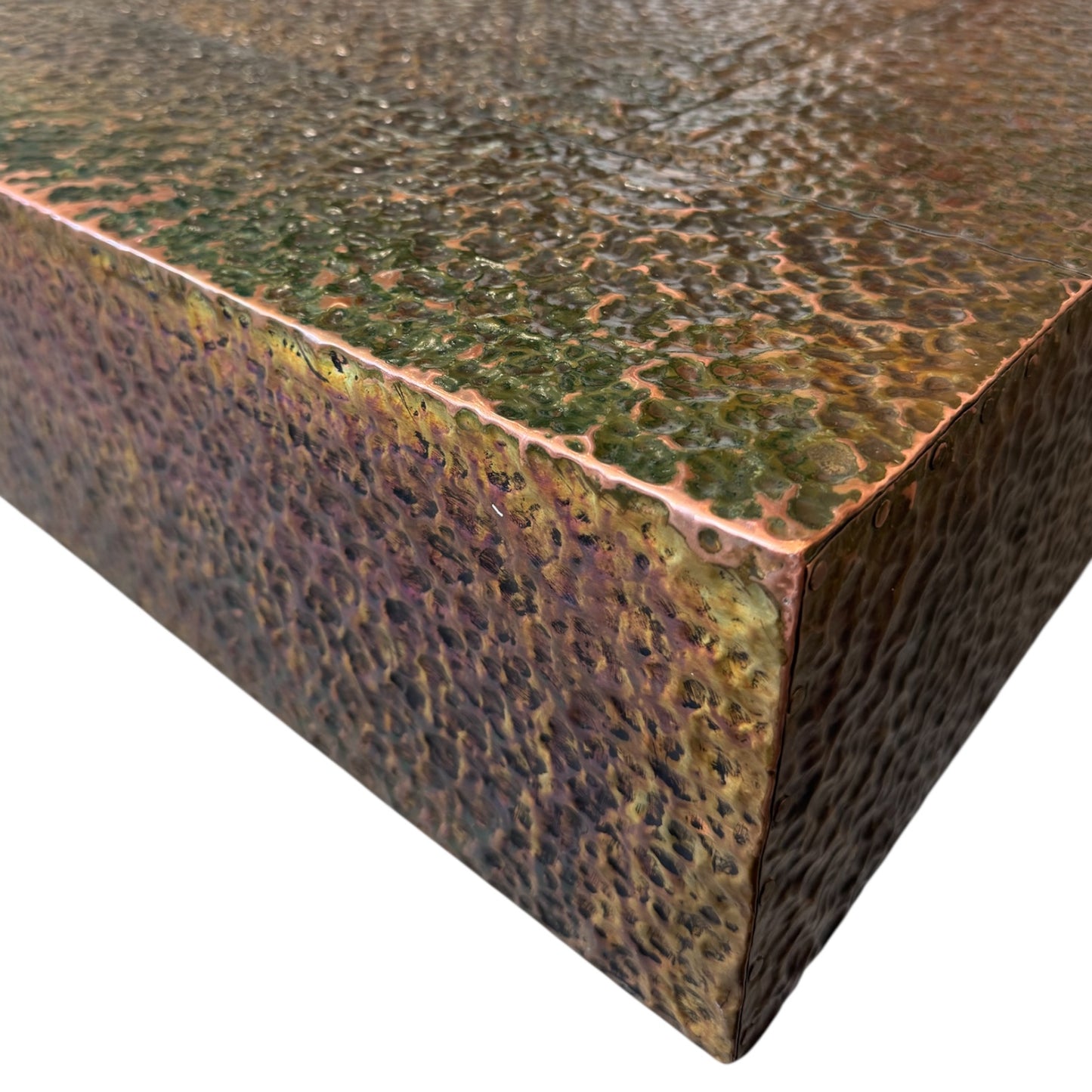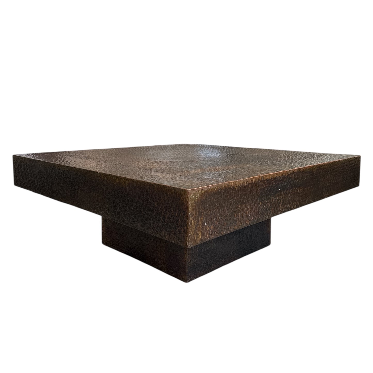 Large Scale Wood Coffee Table Covered Entirely in Hammered Copper