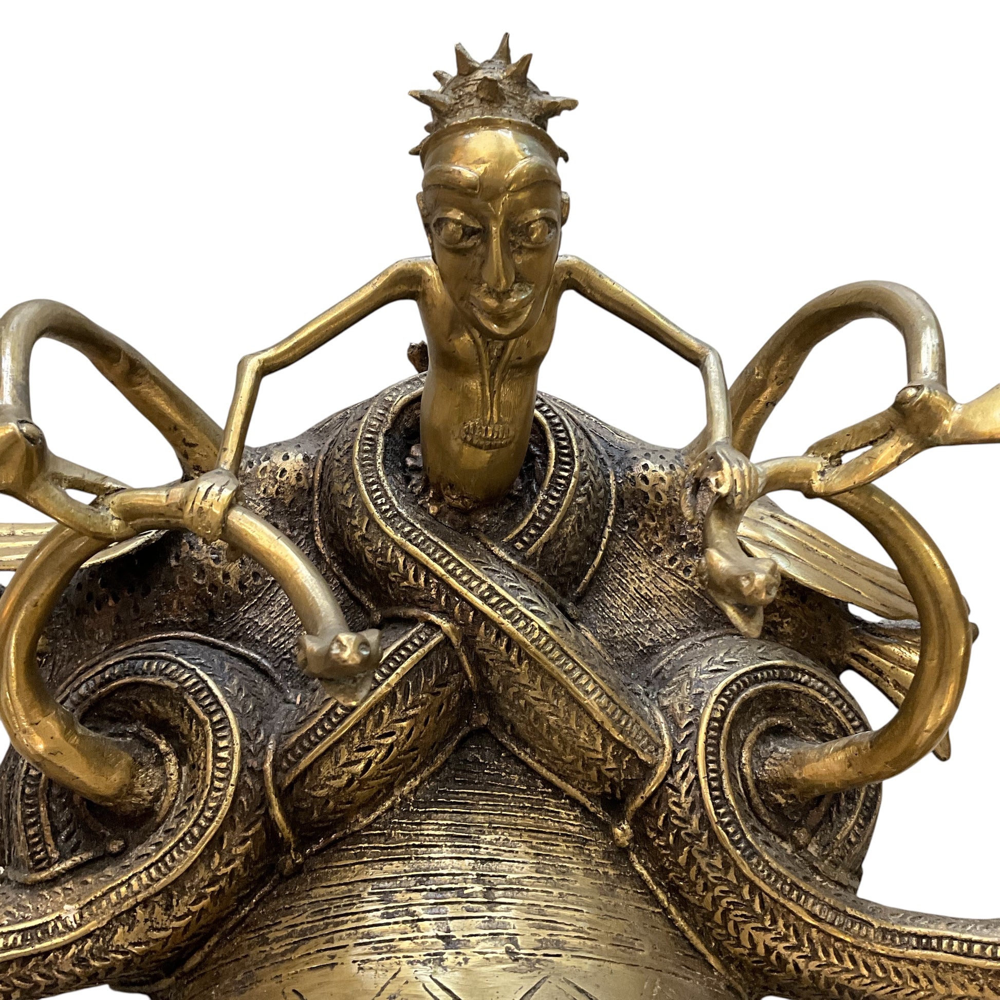 This mask is originally from the Bamiléké people. The Bamiléké people are an ethnic group of Central Africa that inhabit the Western High Plateau colloquially known as the grassfields of Cameroon. These masks are used during rituals of dance ceremonies.