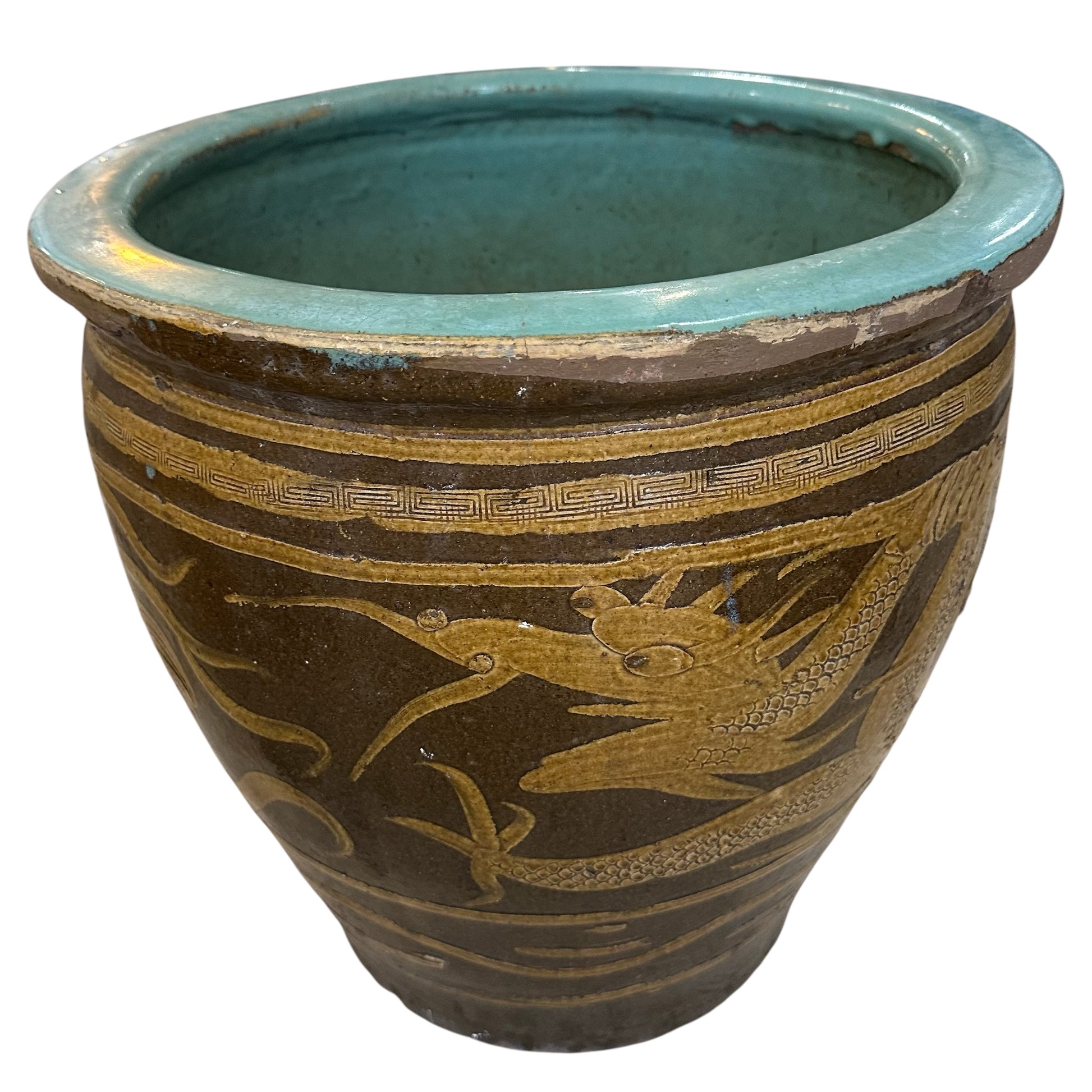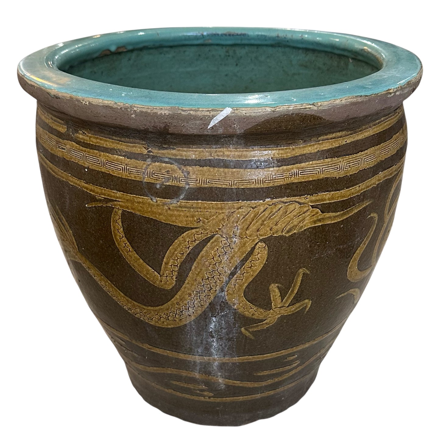 Chinese Dragon Egg Planter - Glazed Stoneware