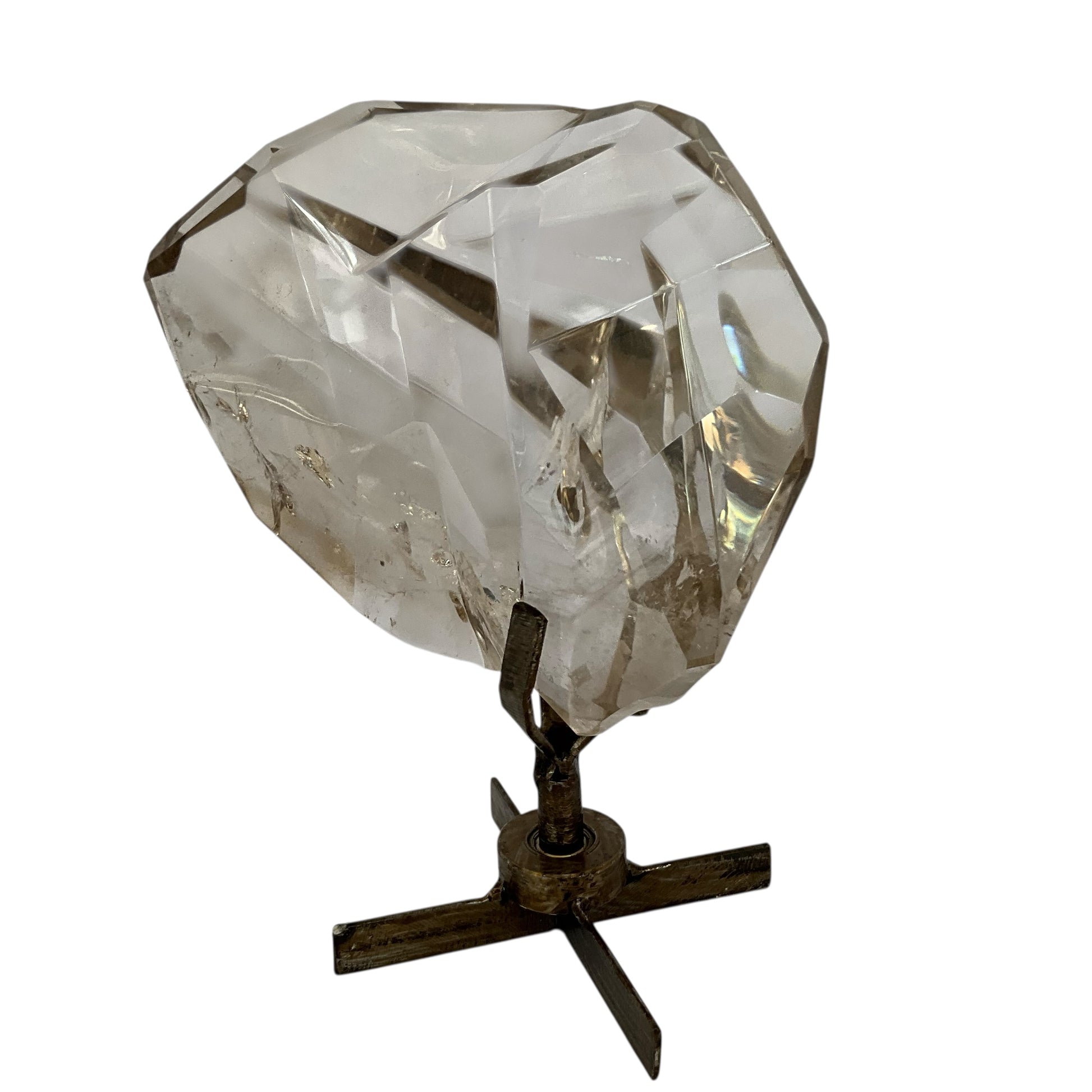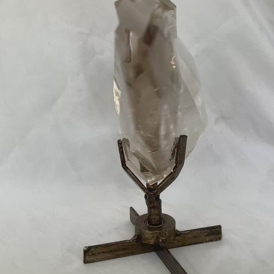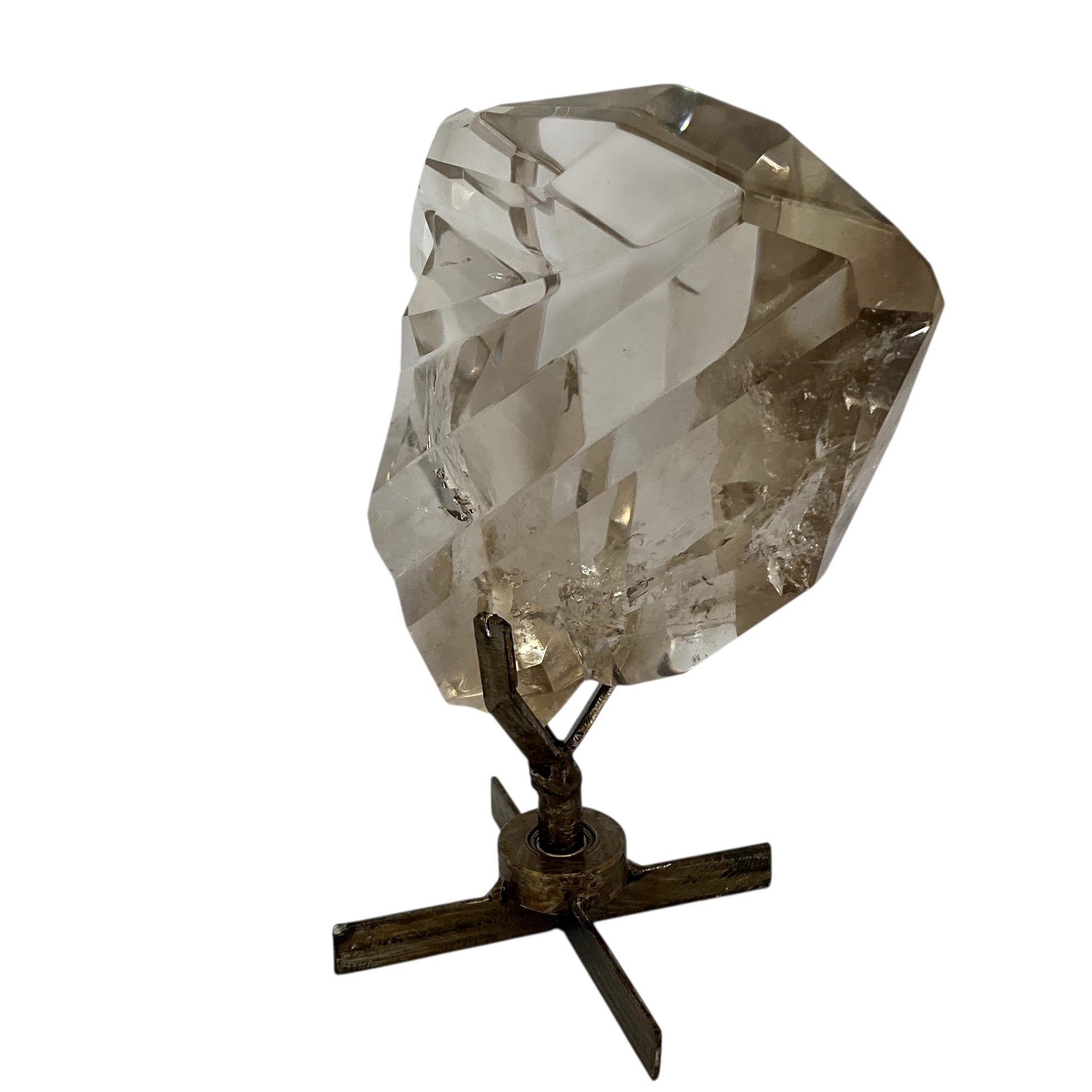 Clear Smoky Quartz Faceted Crystal on Spinning Stand