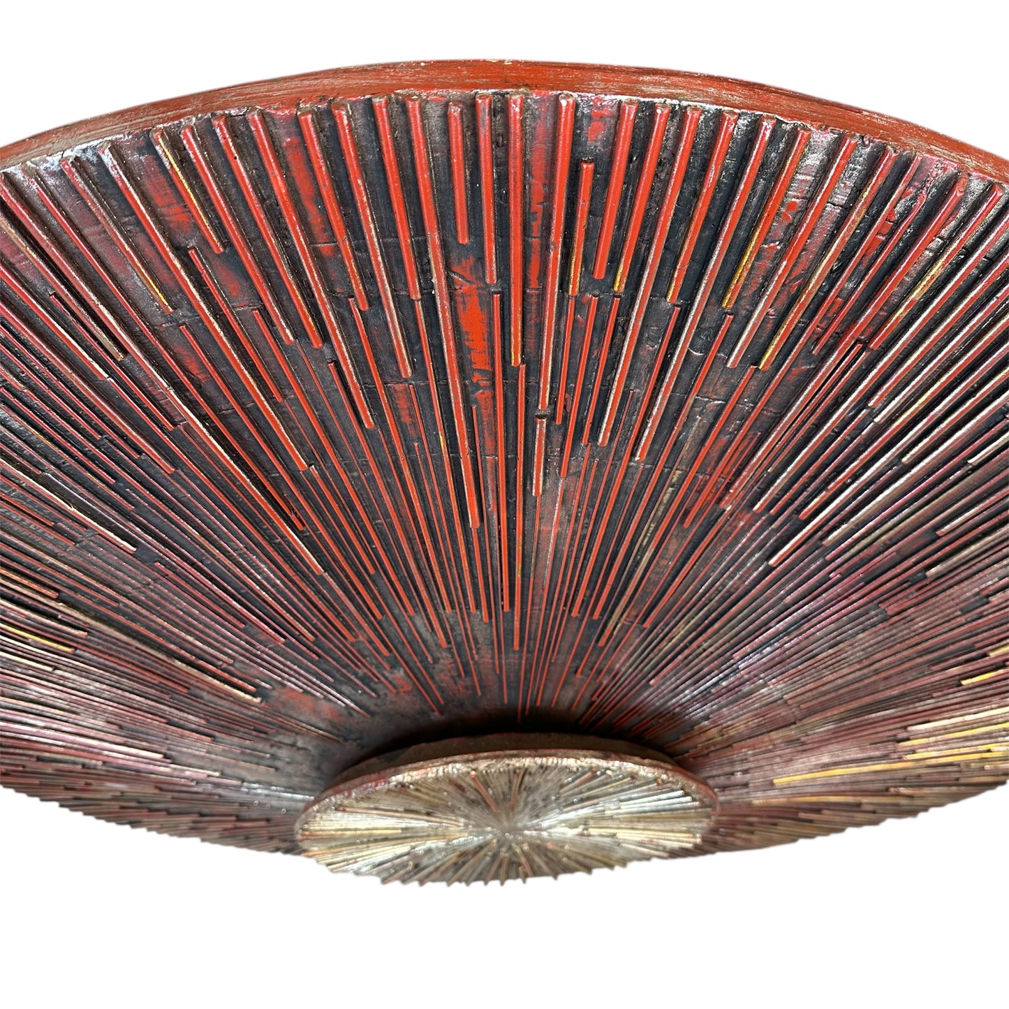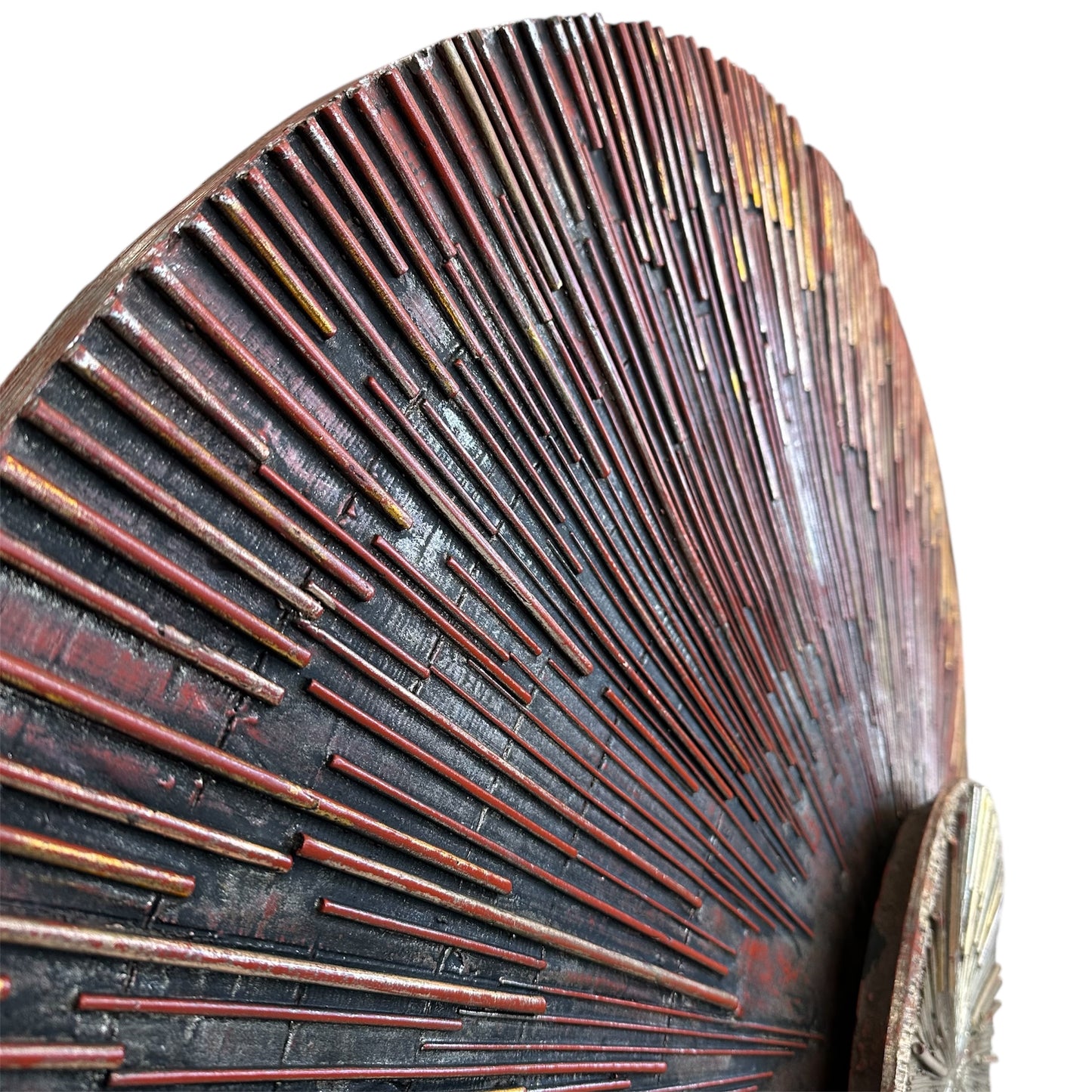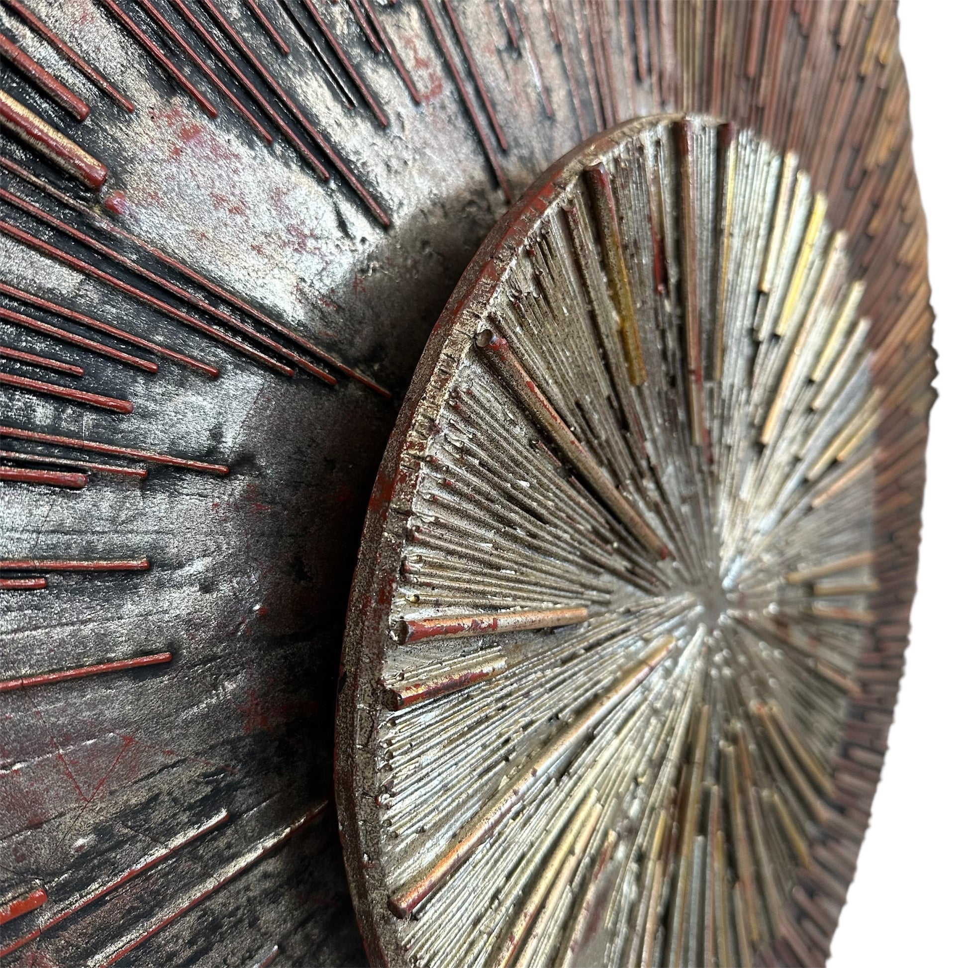 Large Round Brutalist Wall Hanging Made from Composite Fibreglass and Wood in a Sunburst Motif
