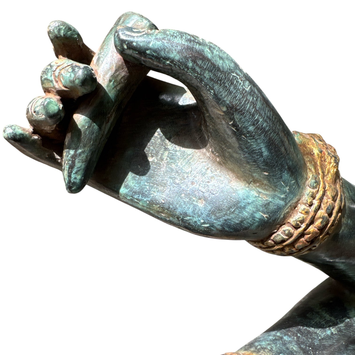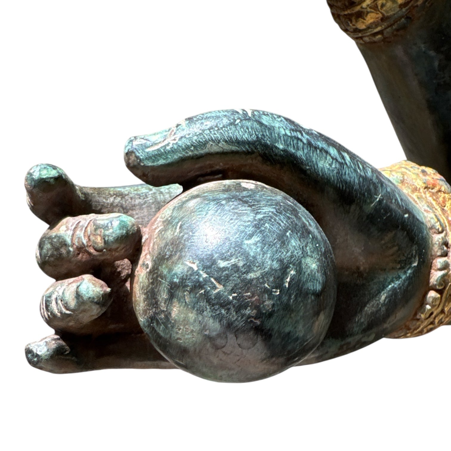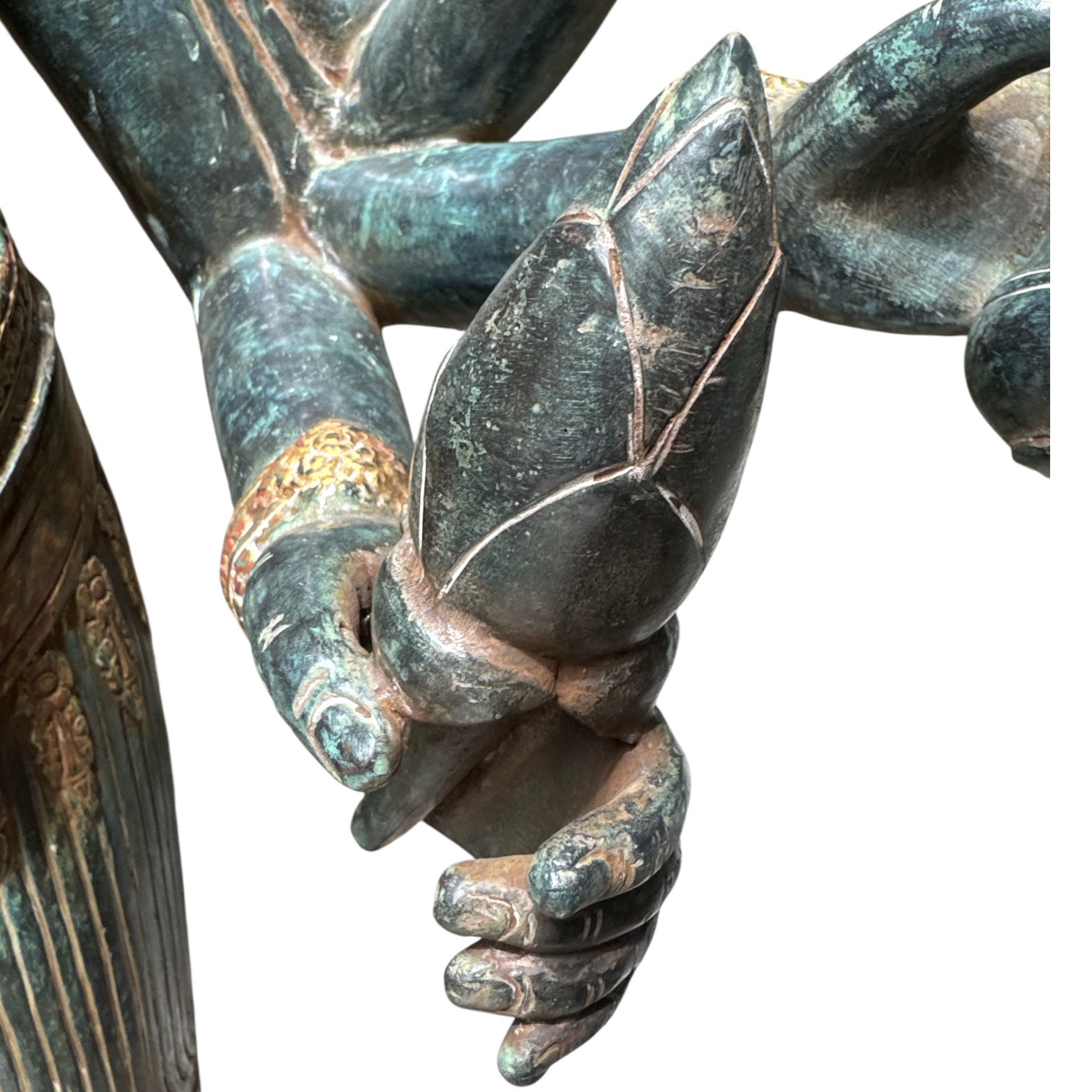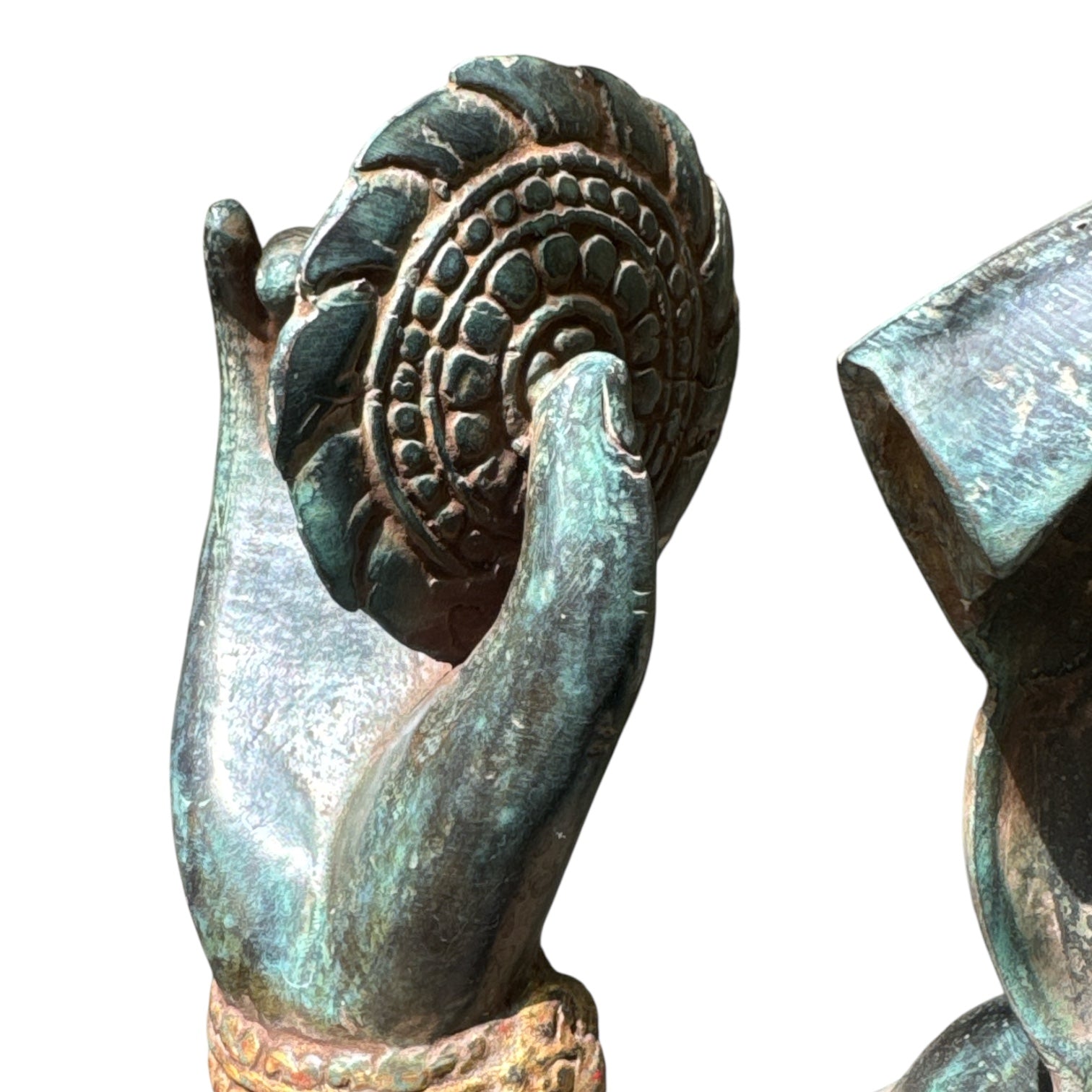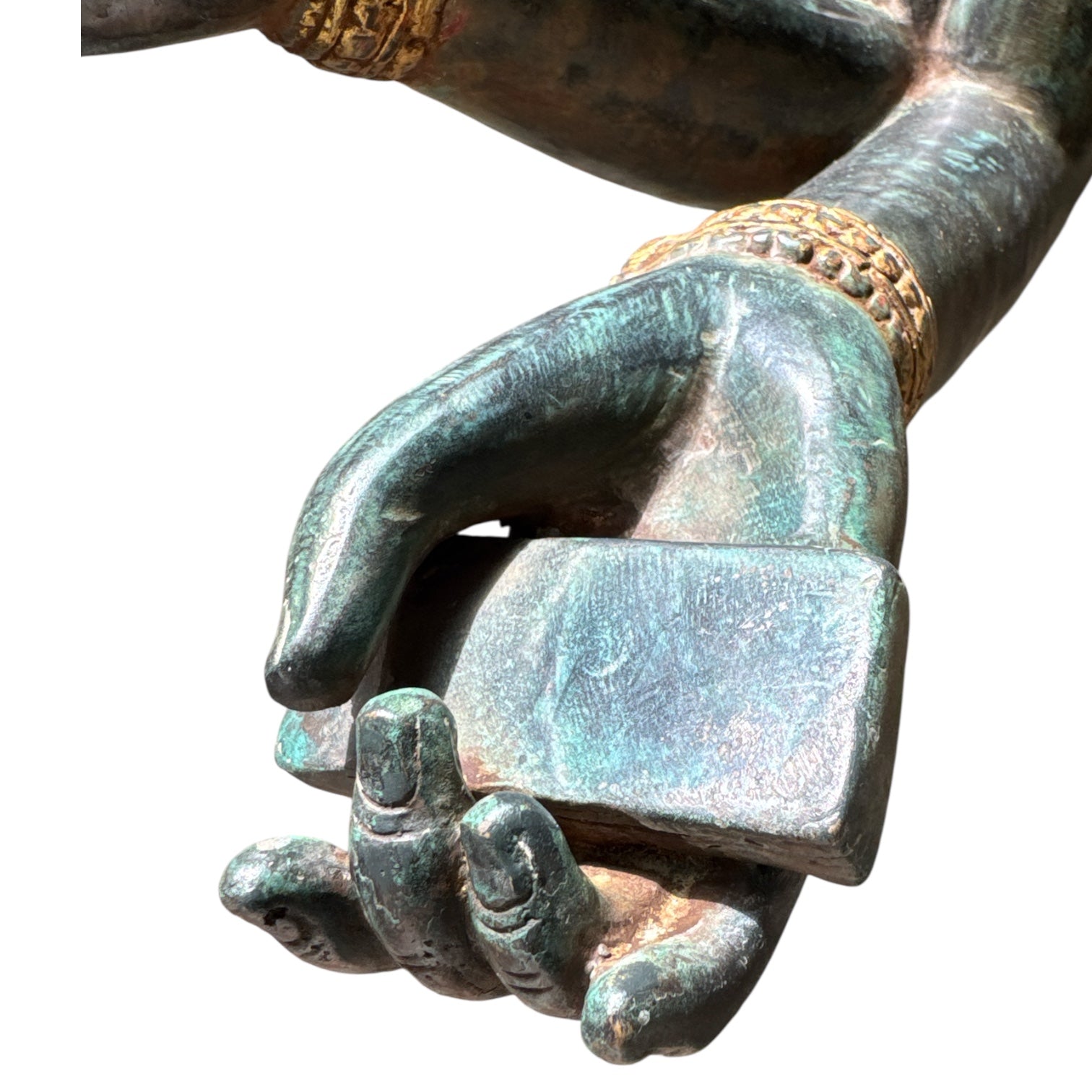 This bronze casted, resin coated Ganesha sculpture made in 1995 as an exact replica of the original ancient sculpture kept in the National Museum of Cambodia.