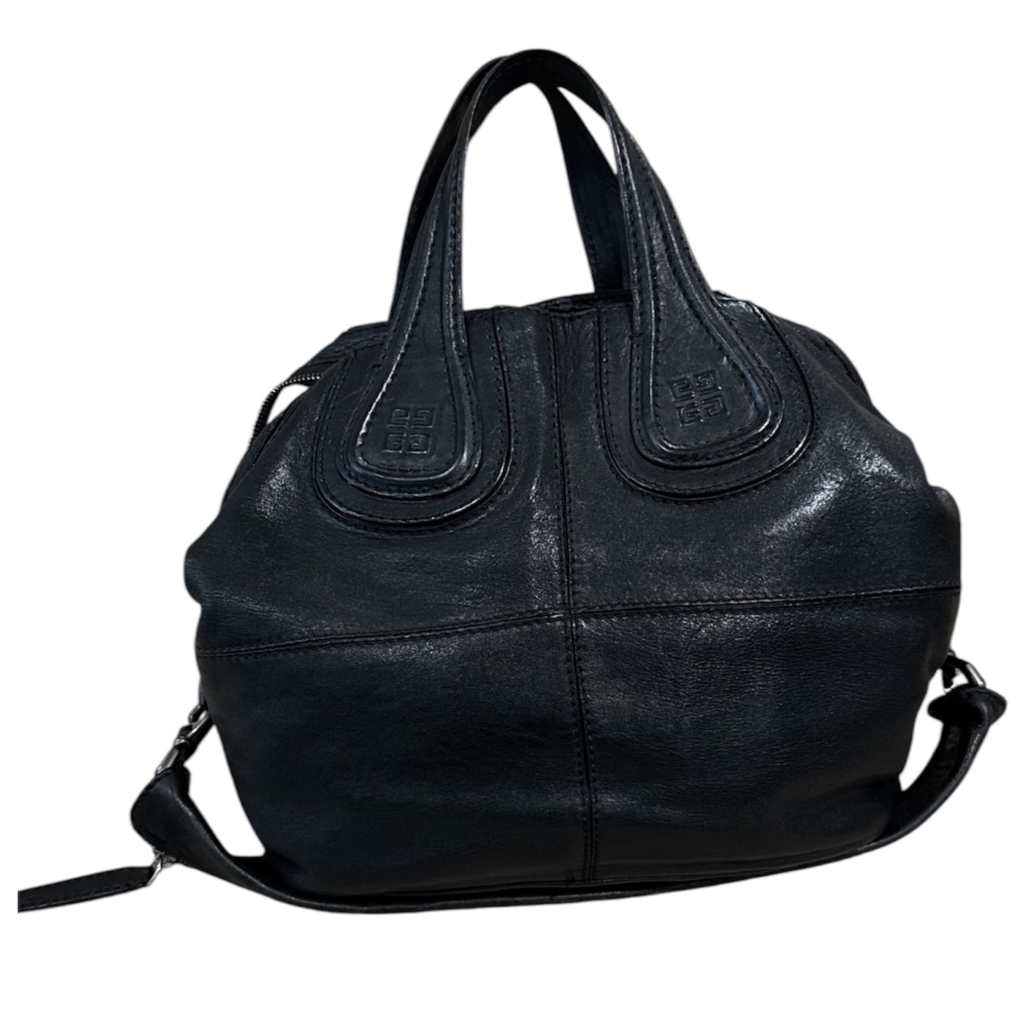 BLACK LEATHER PURSE WITH SILVER HARDWARE