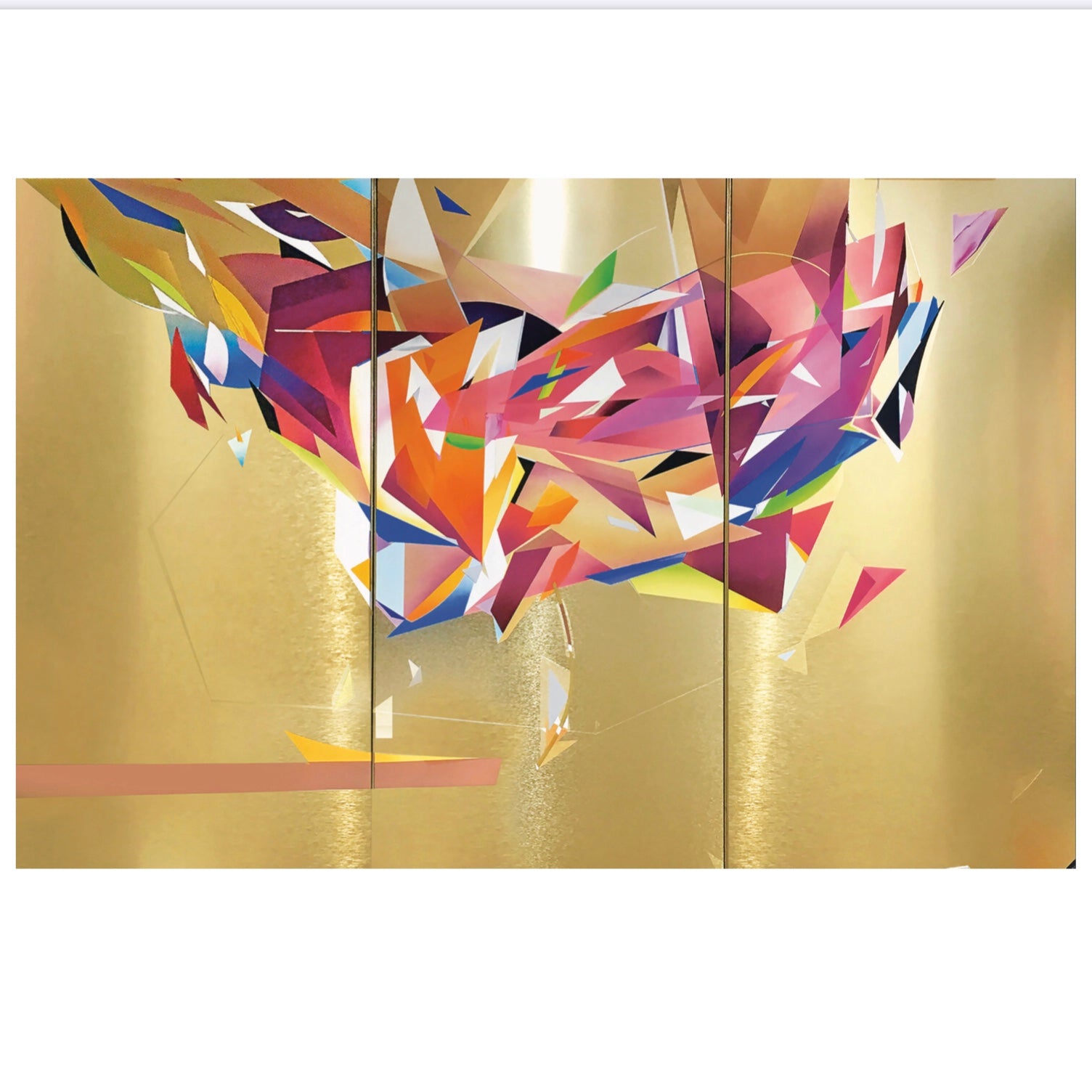 Acrylic, Oil, Gold Foil, & Resin on Gold Brushed Aluminum