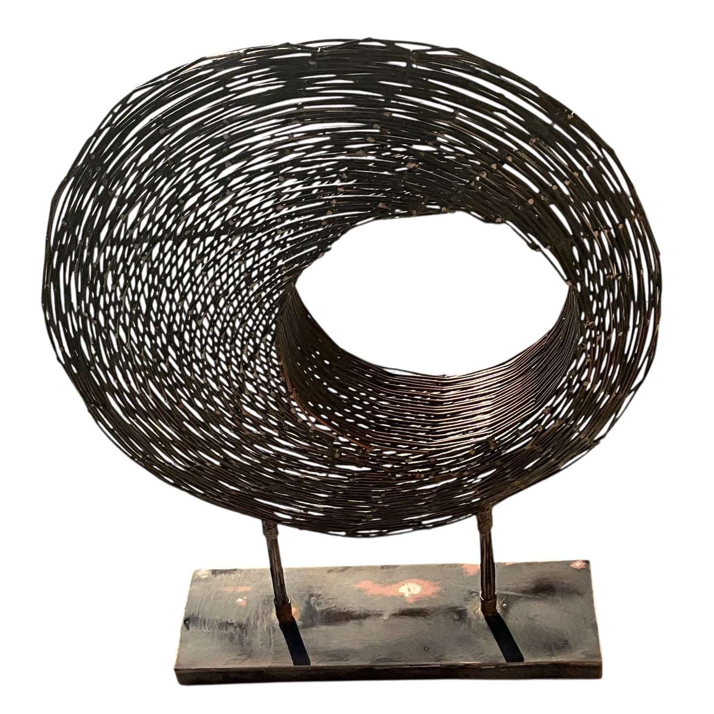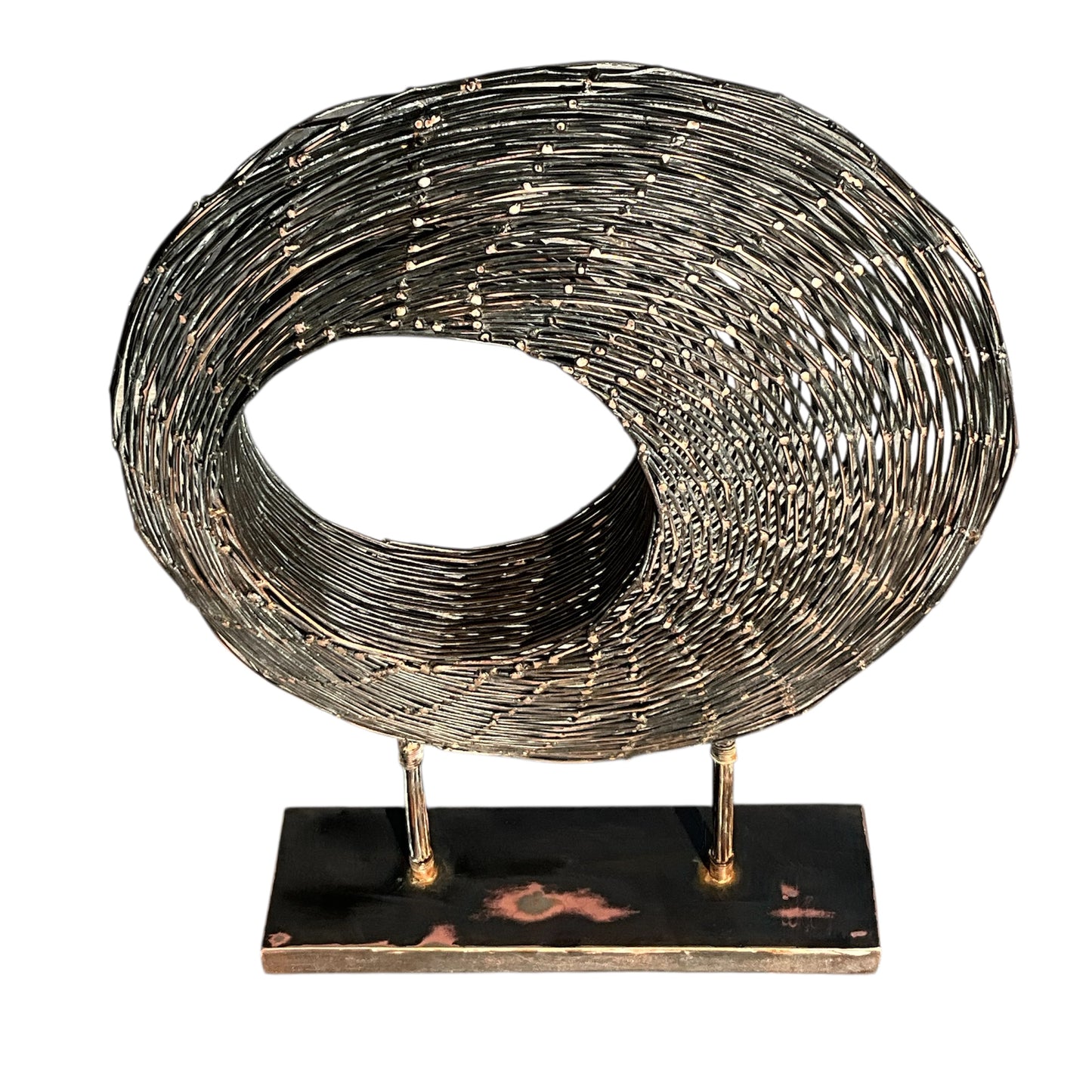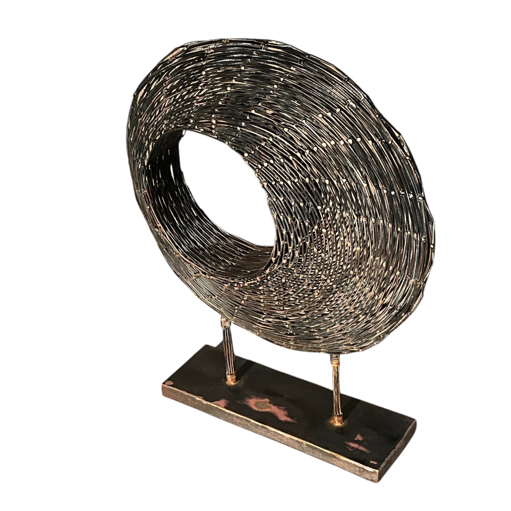 Blackened Copper Wire Spiral Sculpture on Stand