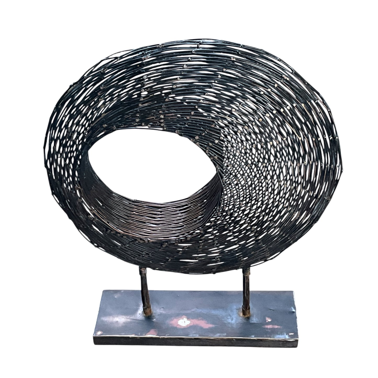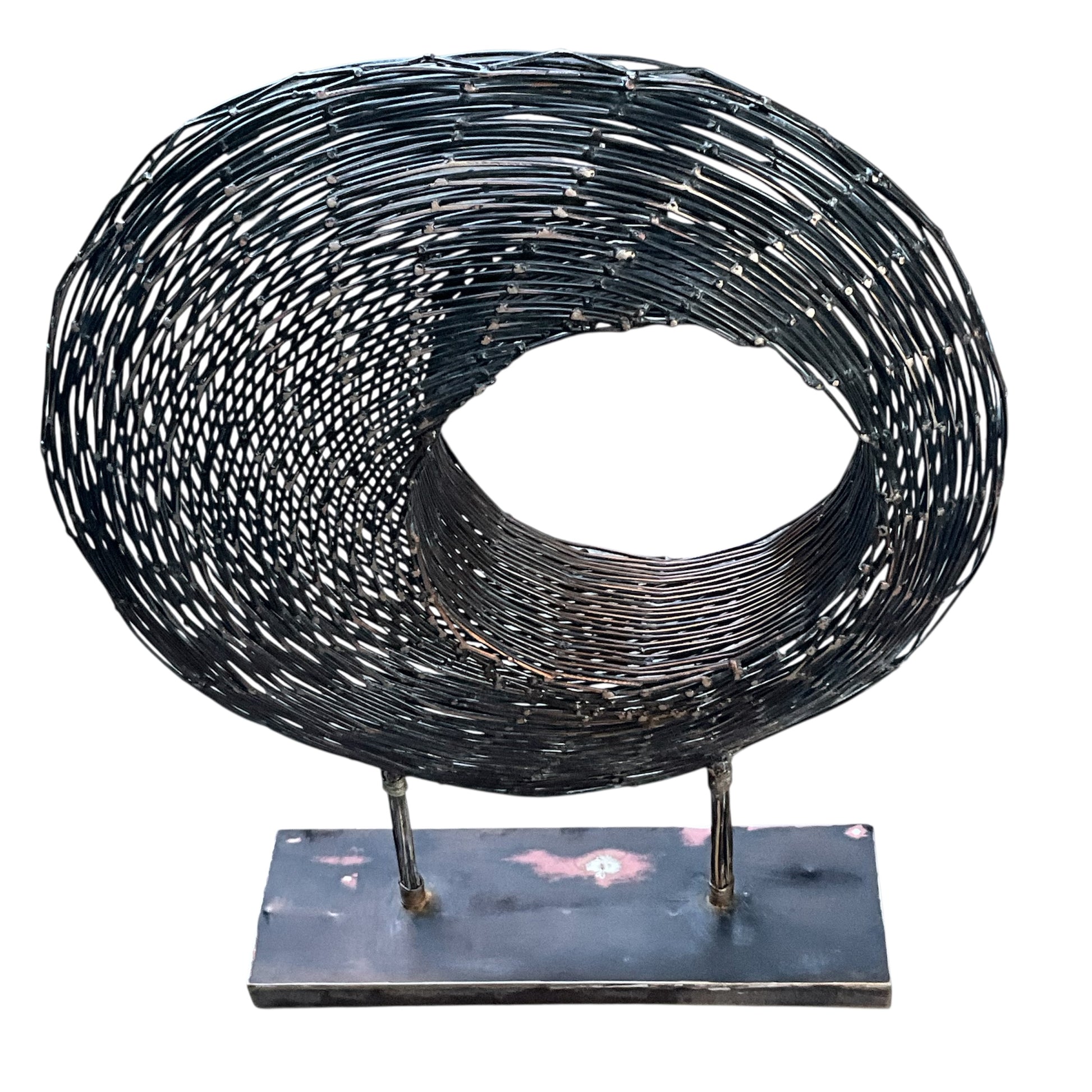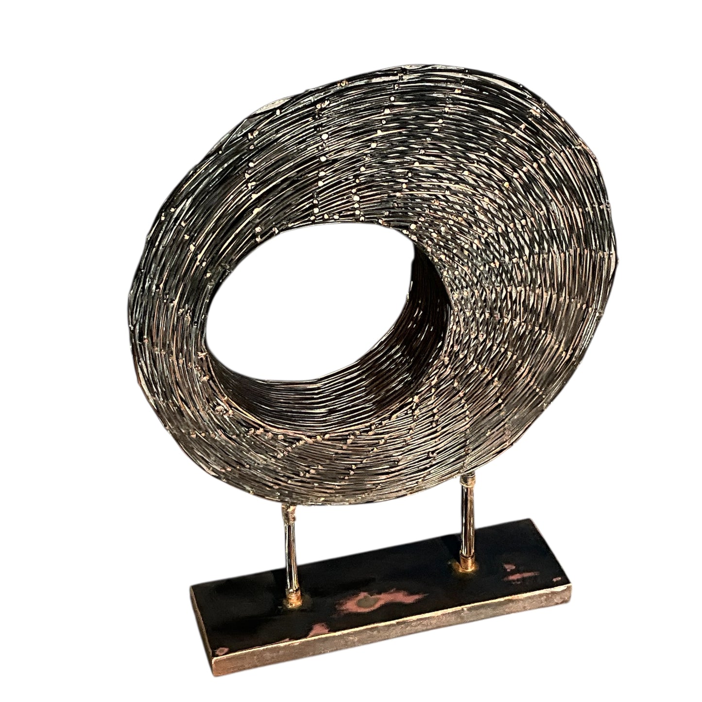 Blackened Copper Wire Spiral Sculpture on Stand