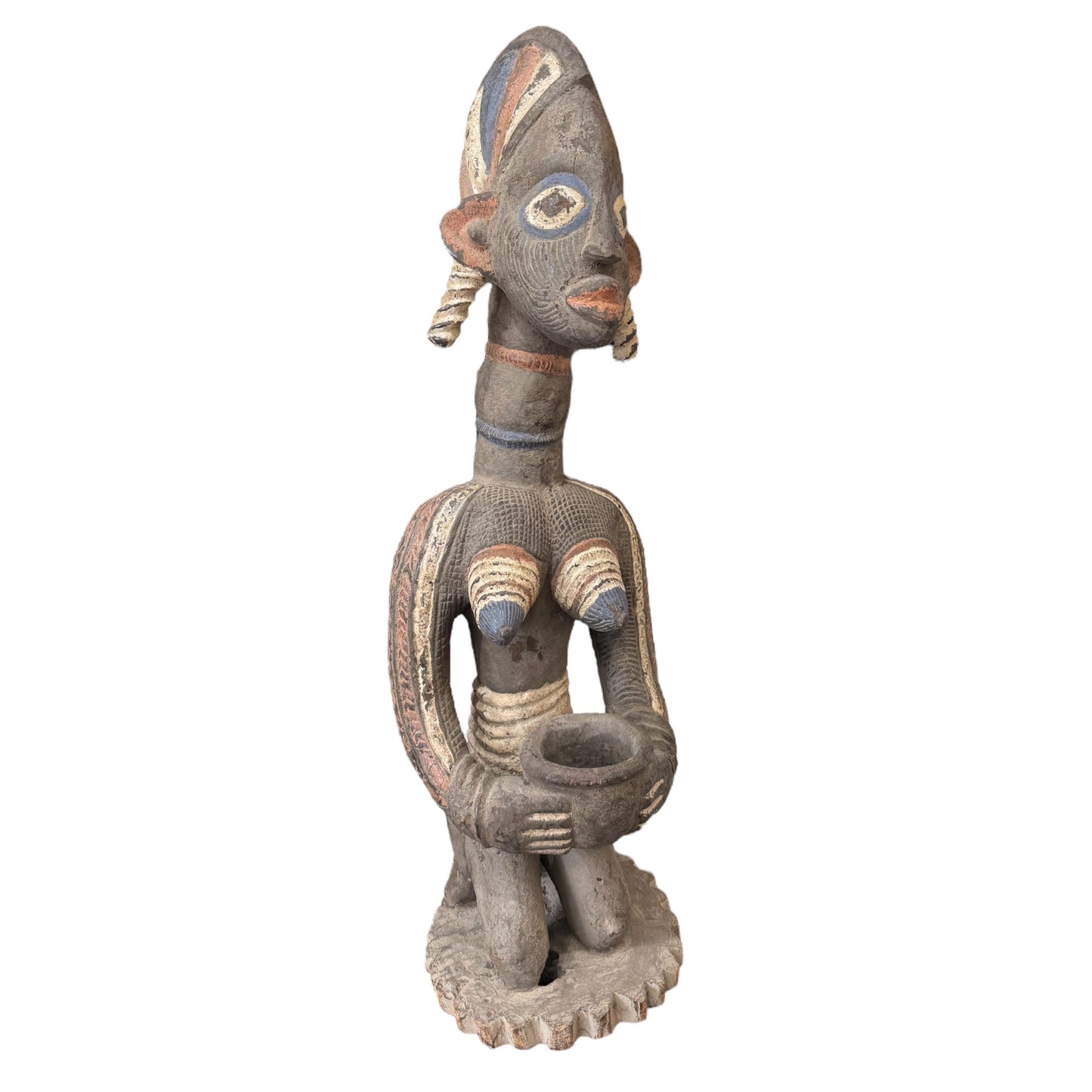 Nigerian Female Holding Bowl Kneeling w/ Stripes