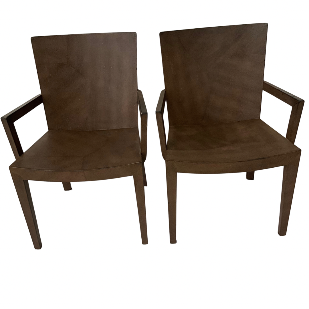 Karl Springer Signed 1987 JMF Lizard Print Leather Pair of Chairs