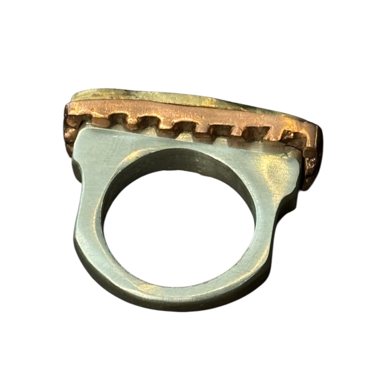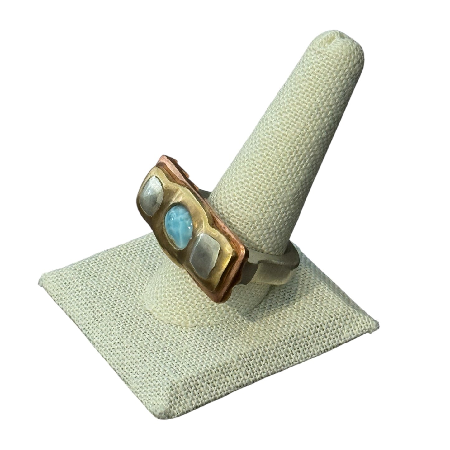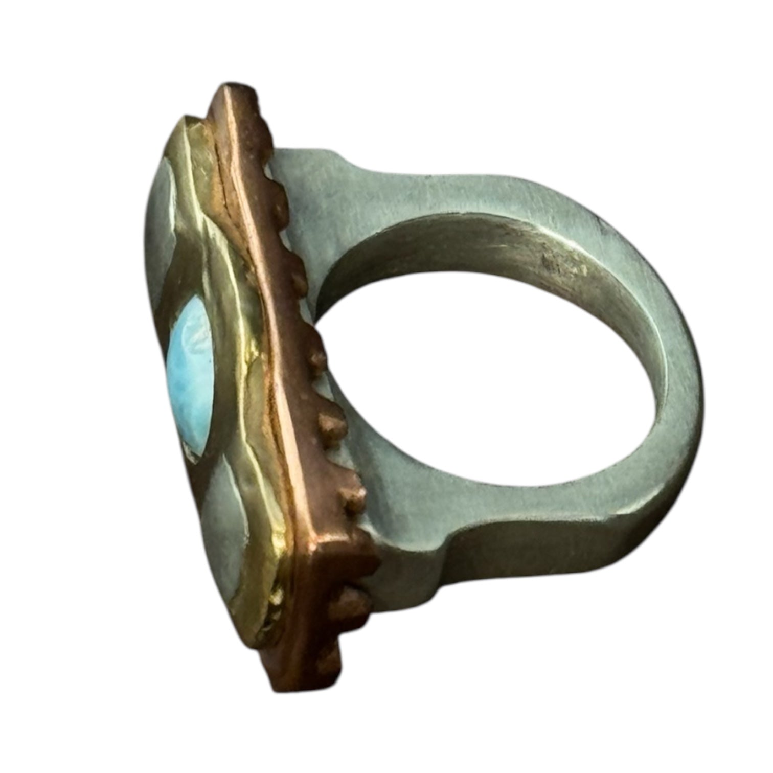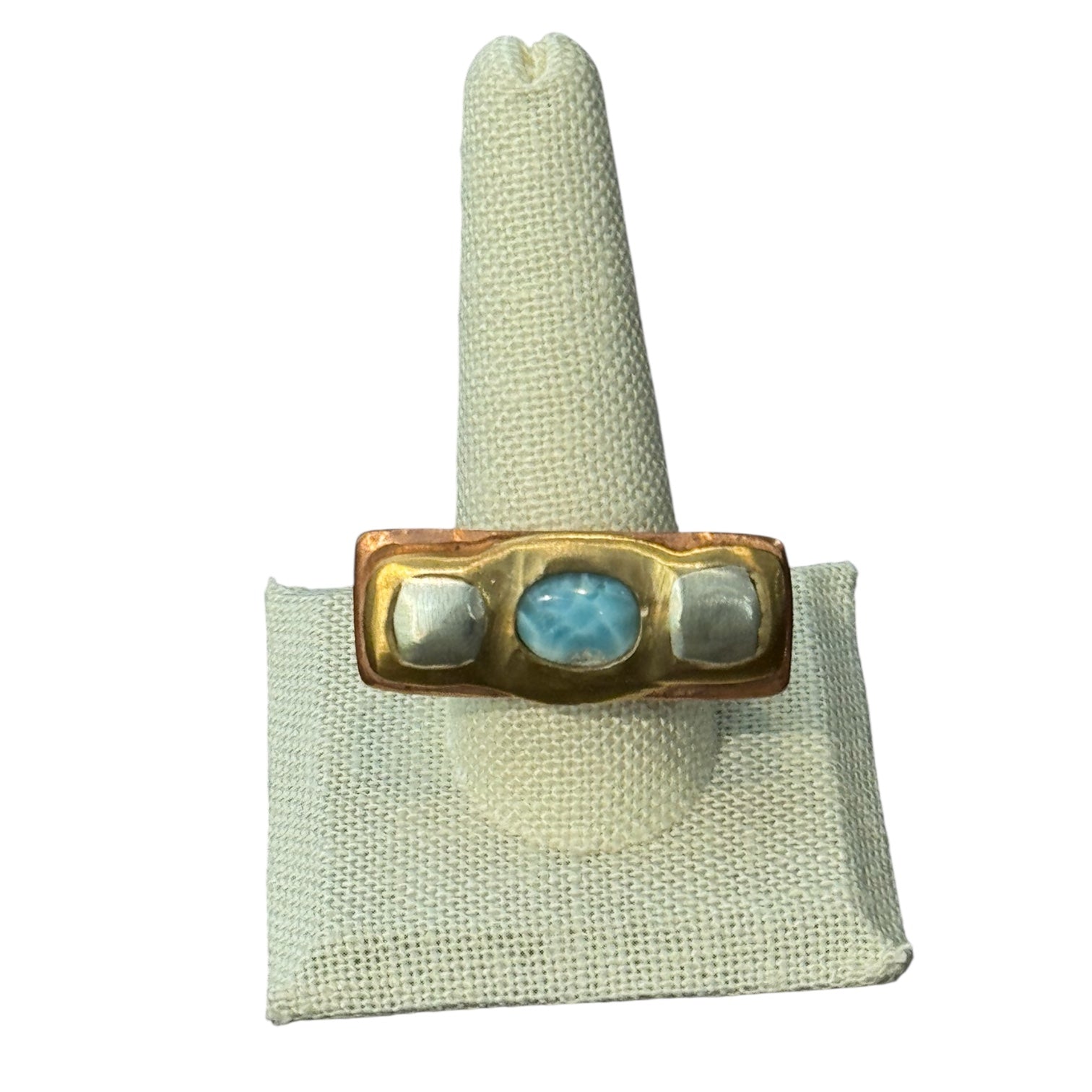 Larimar w/ Brass Silver & Copper Teeth Ring