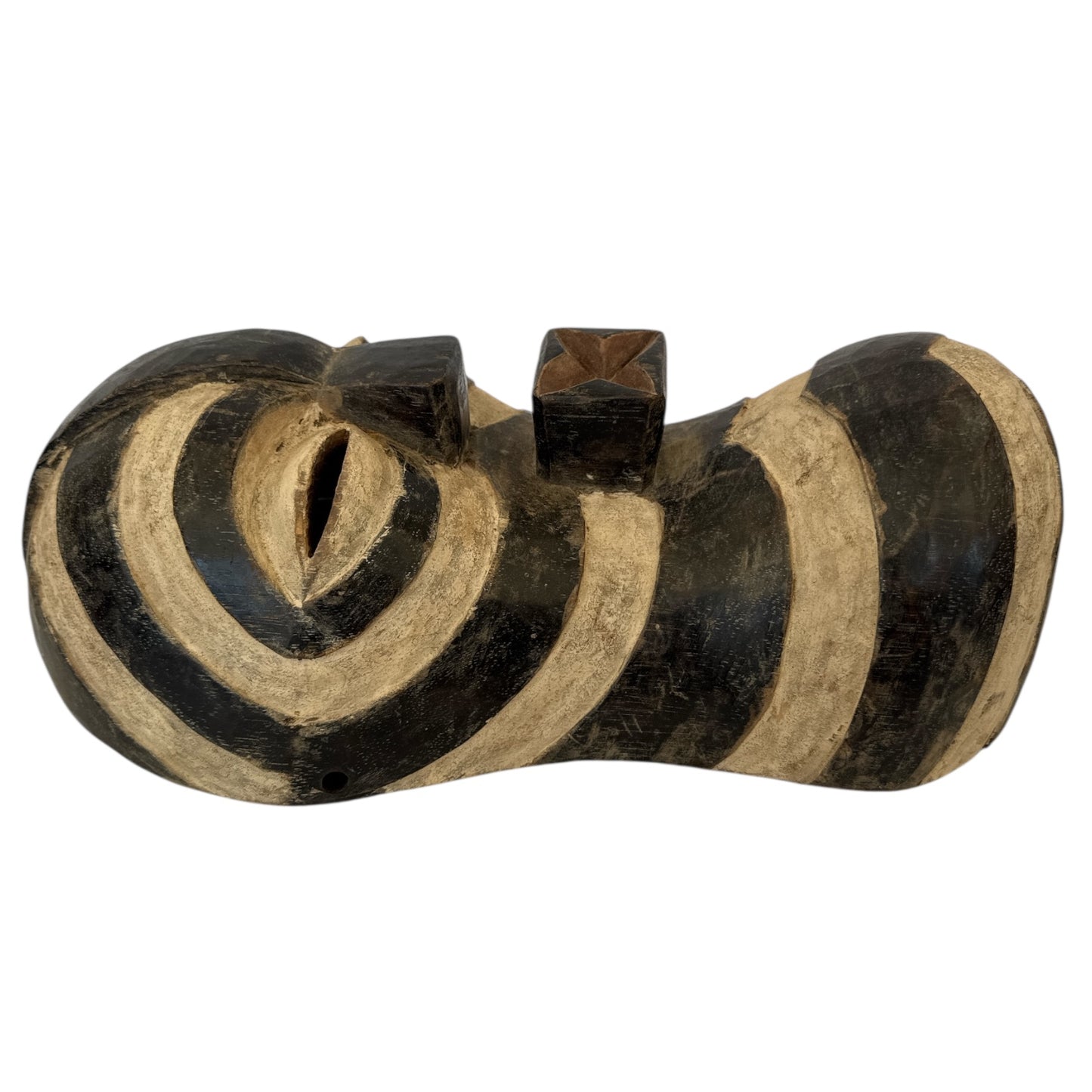 Black/Beige Stripes Square Mouth. Cut out slit eyes.