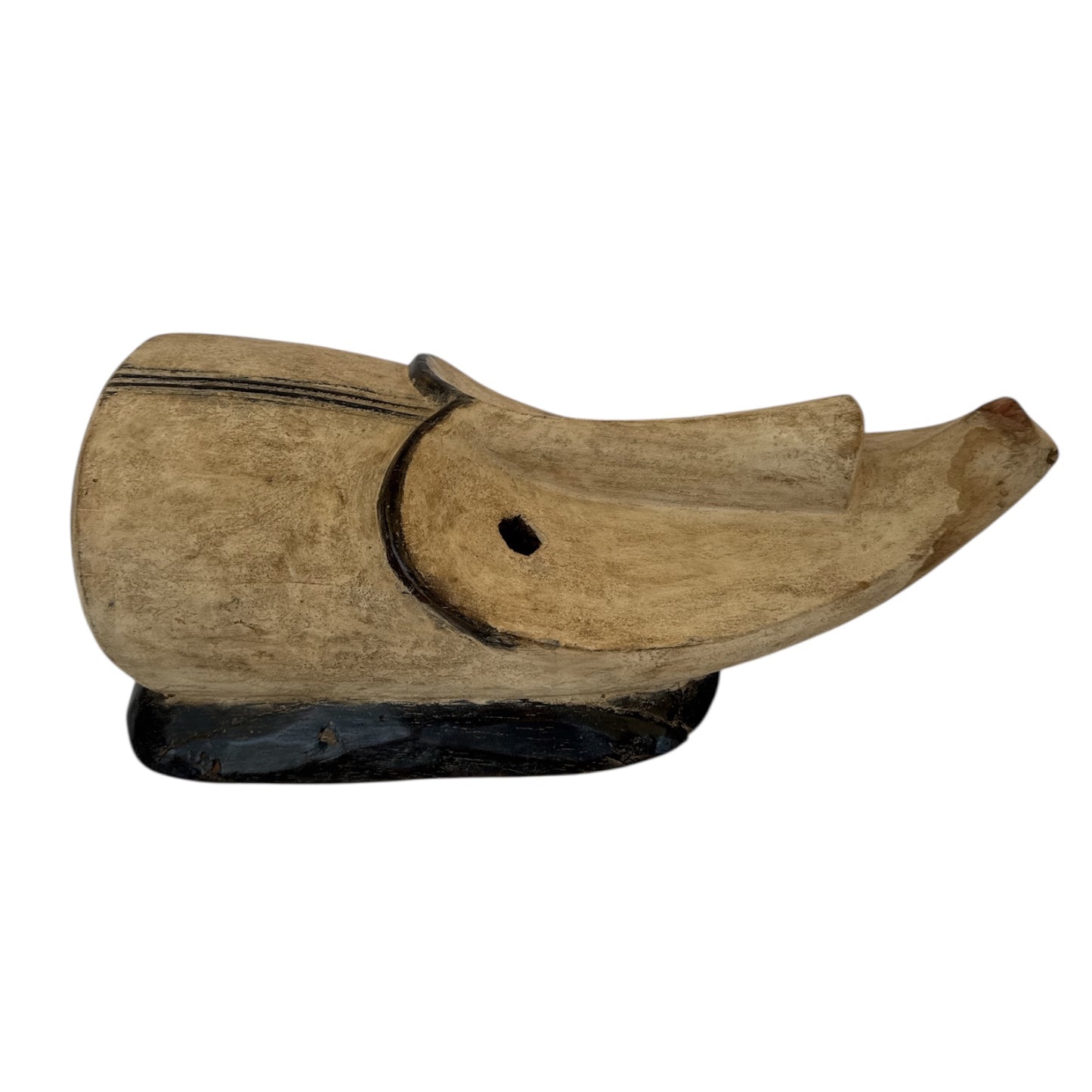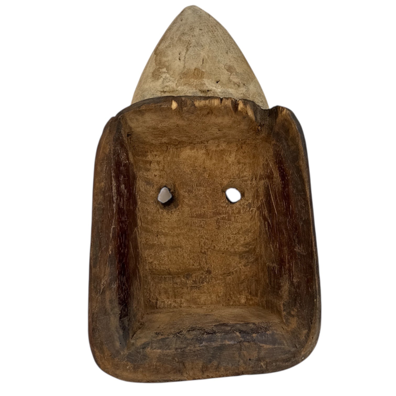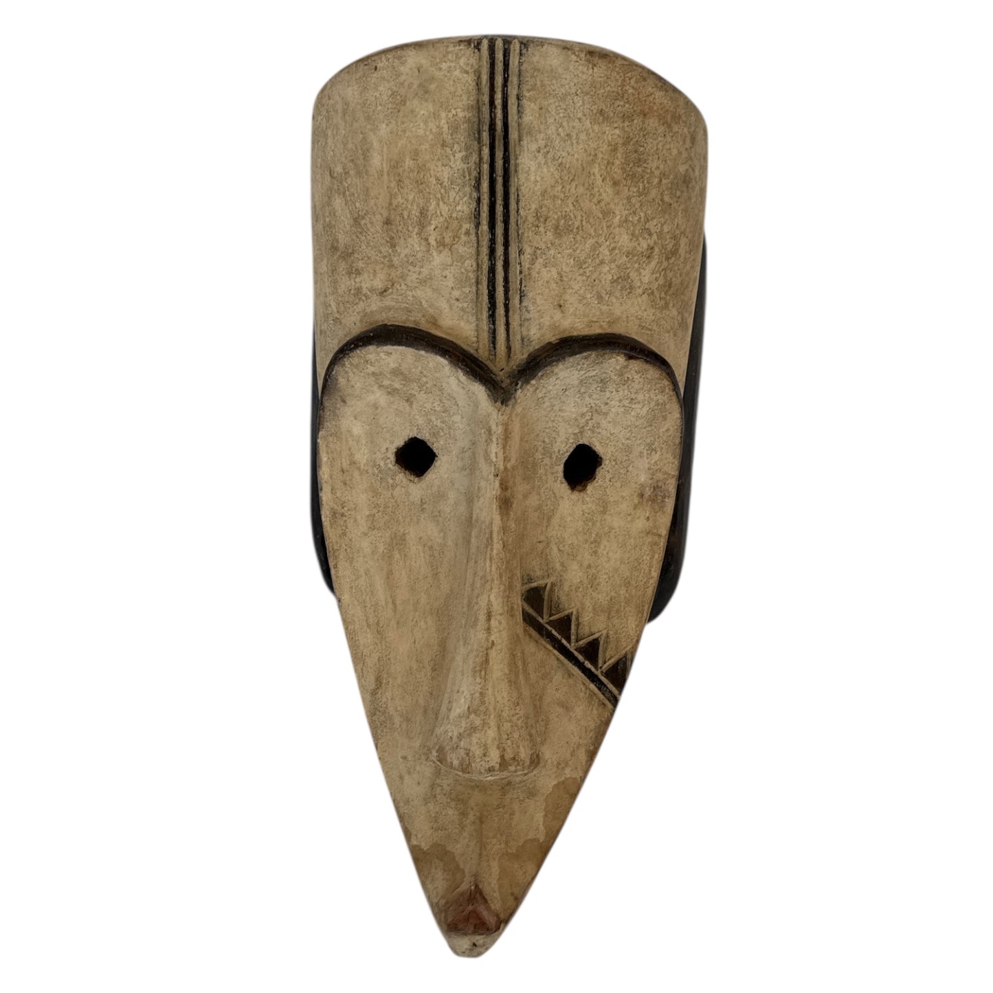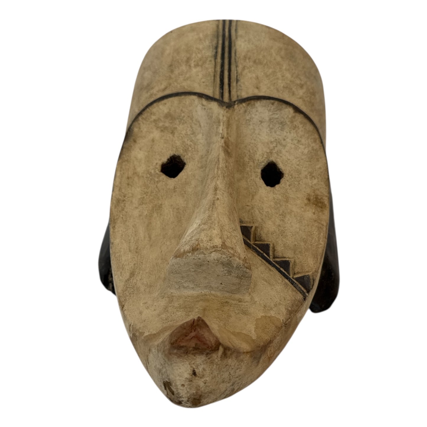 Heart Face with Black ears and elongated round cut out eyes. Pyramids on the right cheek.