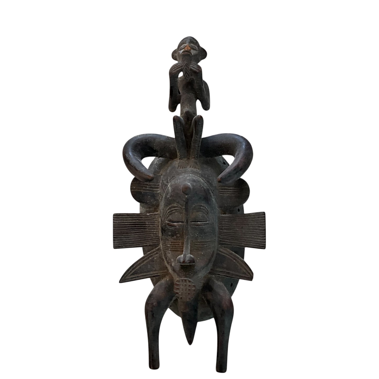 Senufo Wood Carved Mask with Man Hat