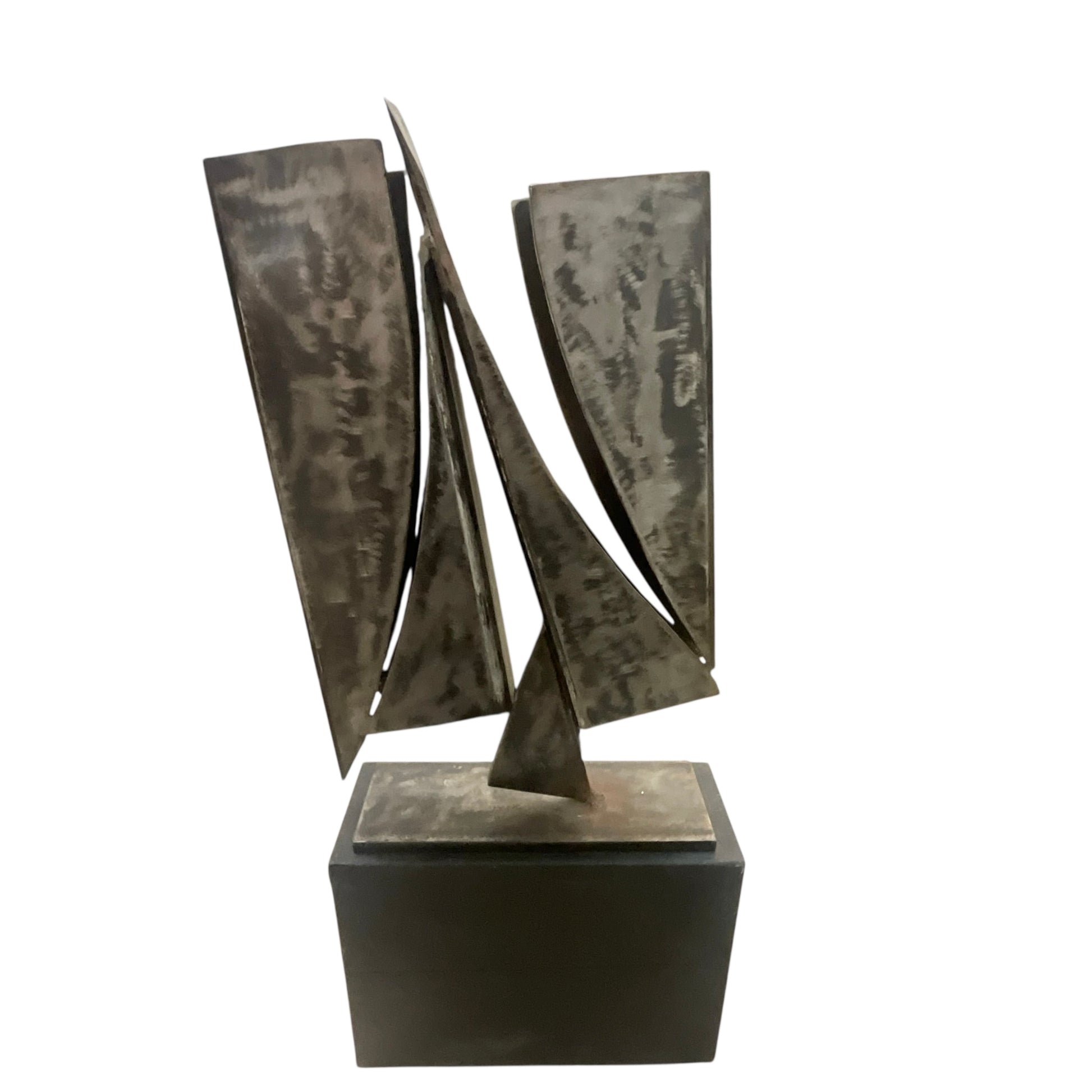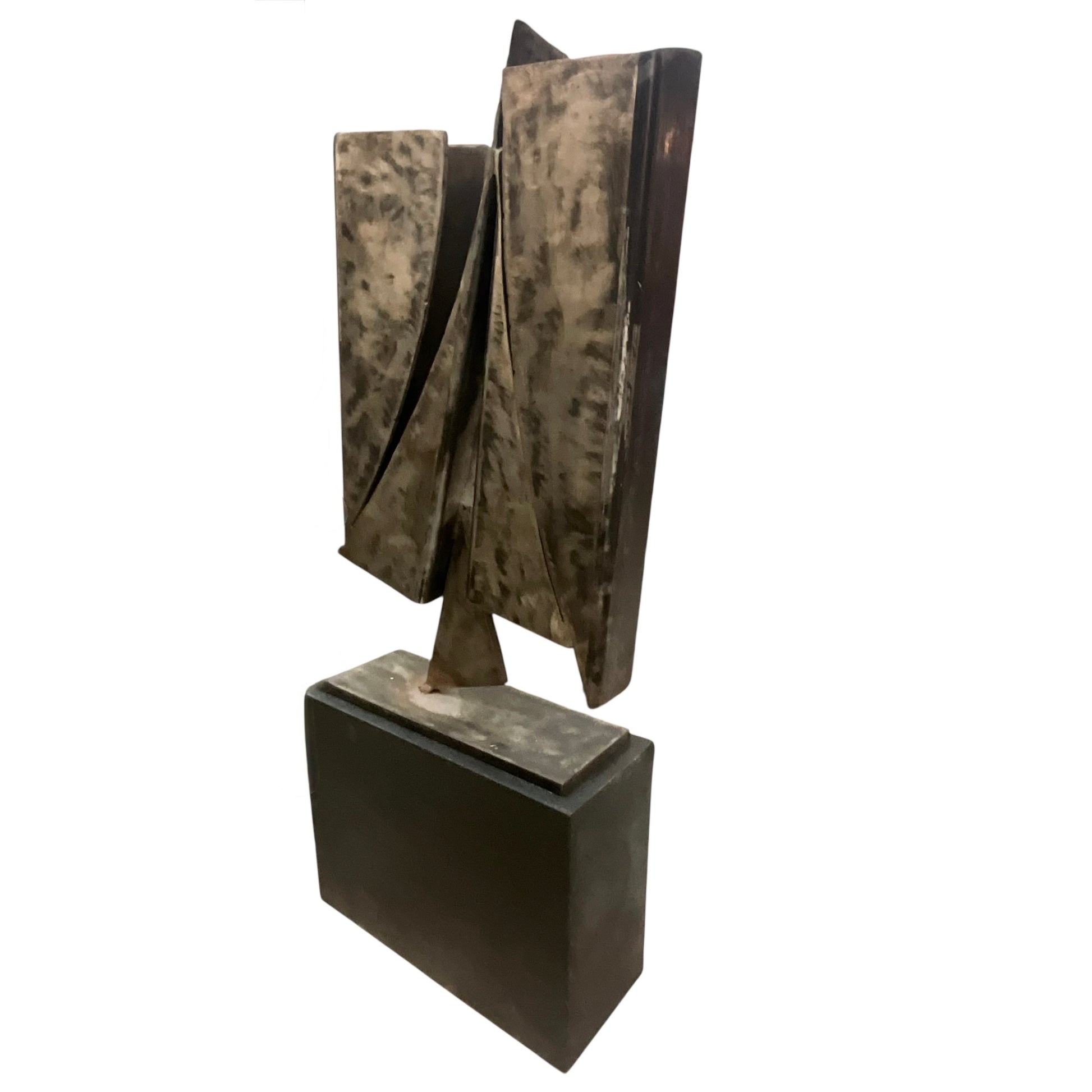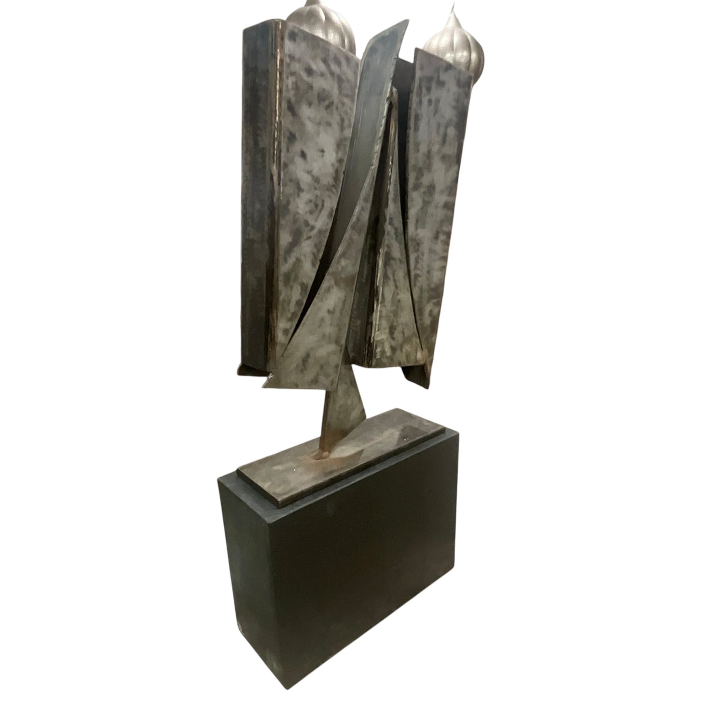 Brutalist Metal Sculpture on Granite Base