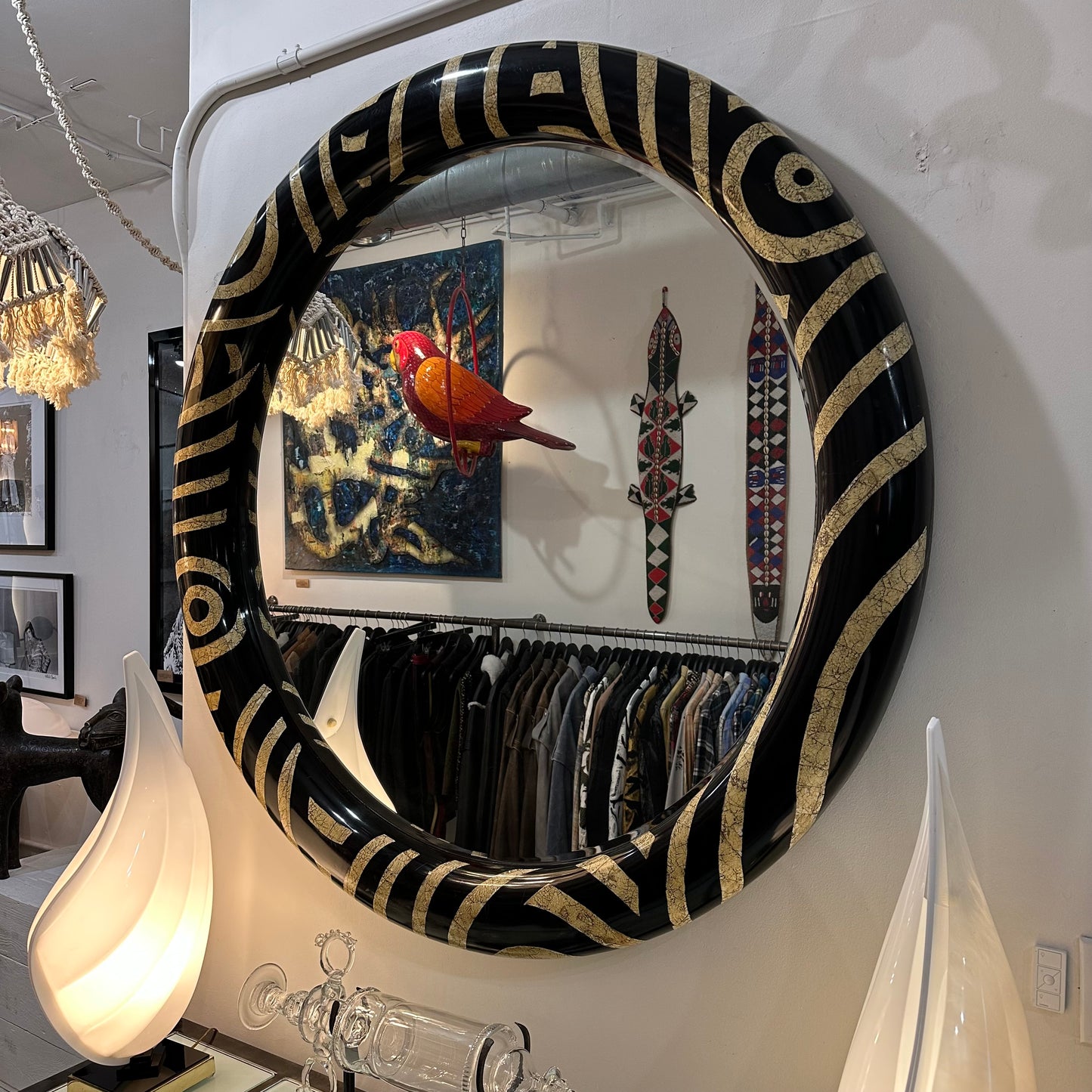 Monumental Africa Collection Tessellated Eggshell Inlay Wood & Lacquer Mirror