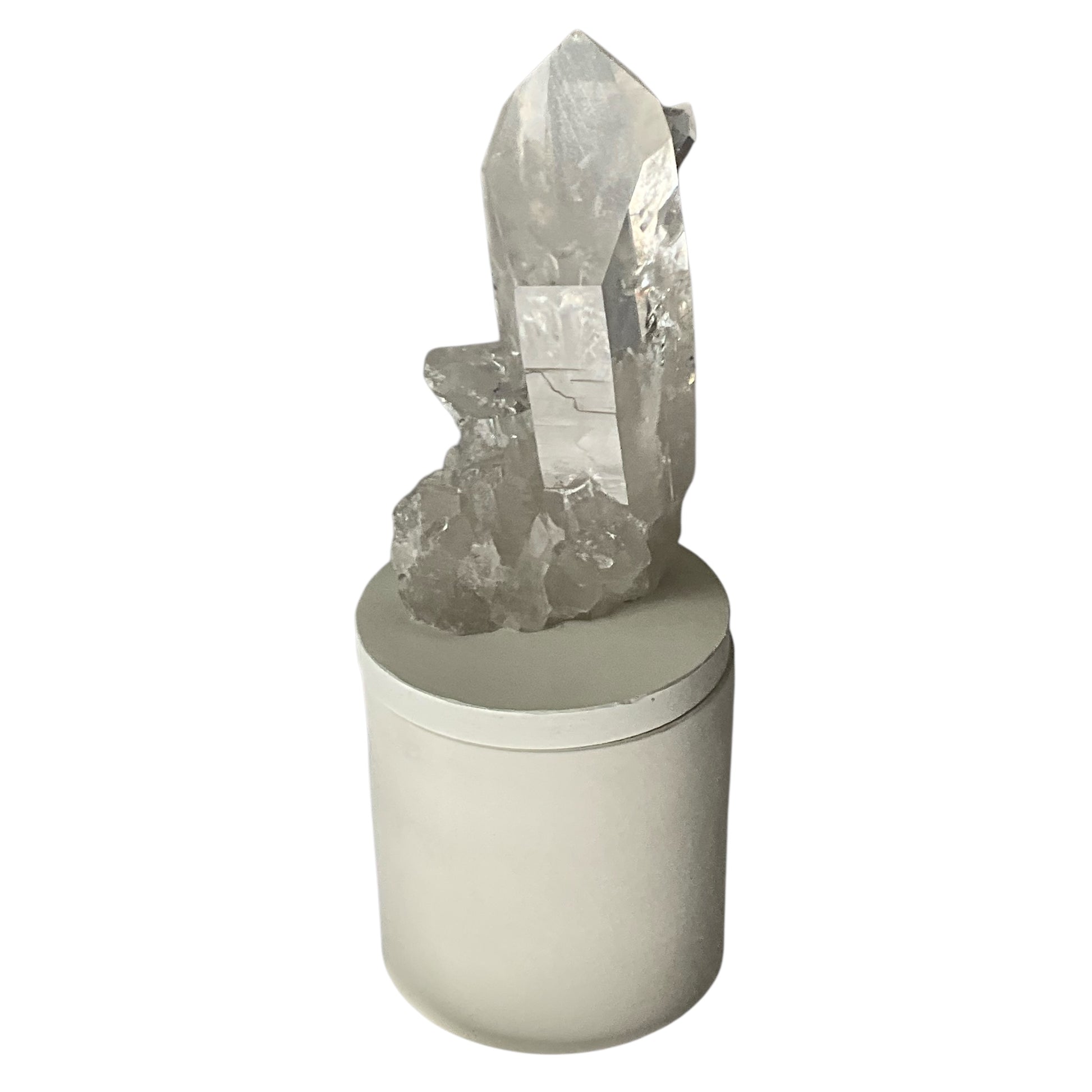 This Candle Features a Large Quartz Crystal Generator Cluster on the Lid - the Crystal measures 2.75” Wide x 3" Deep x 5.75" Tall giving the candle an overall height of 10.25” with the lid